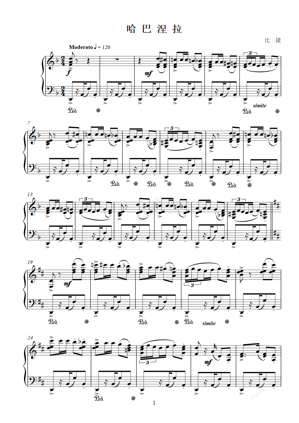 钢琴谱:哈巴涅拉(选自歌剧《卡门》)