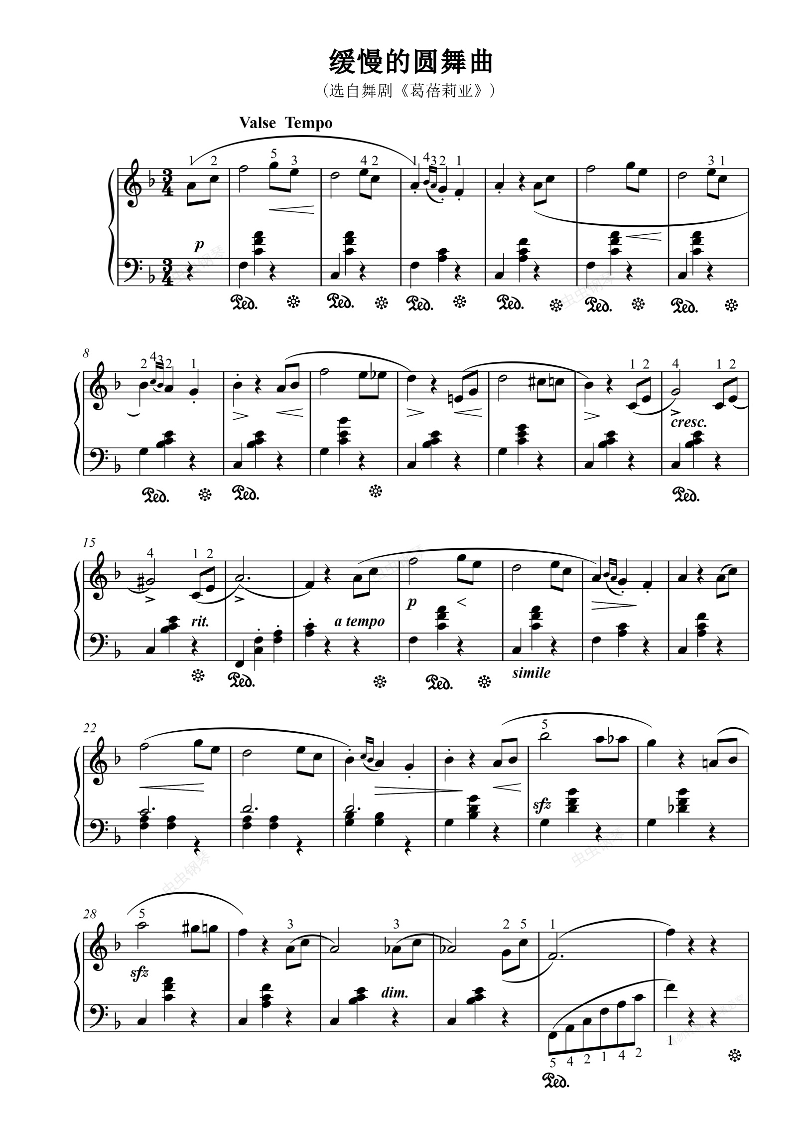 钢琴谱:缓慢的圆舞曲(选自舞剧《葛蓓莉亚》)