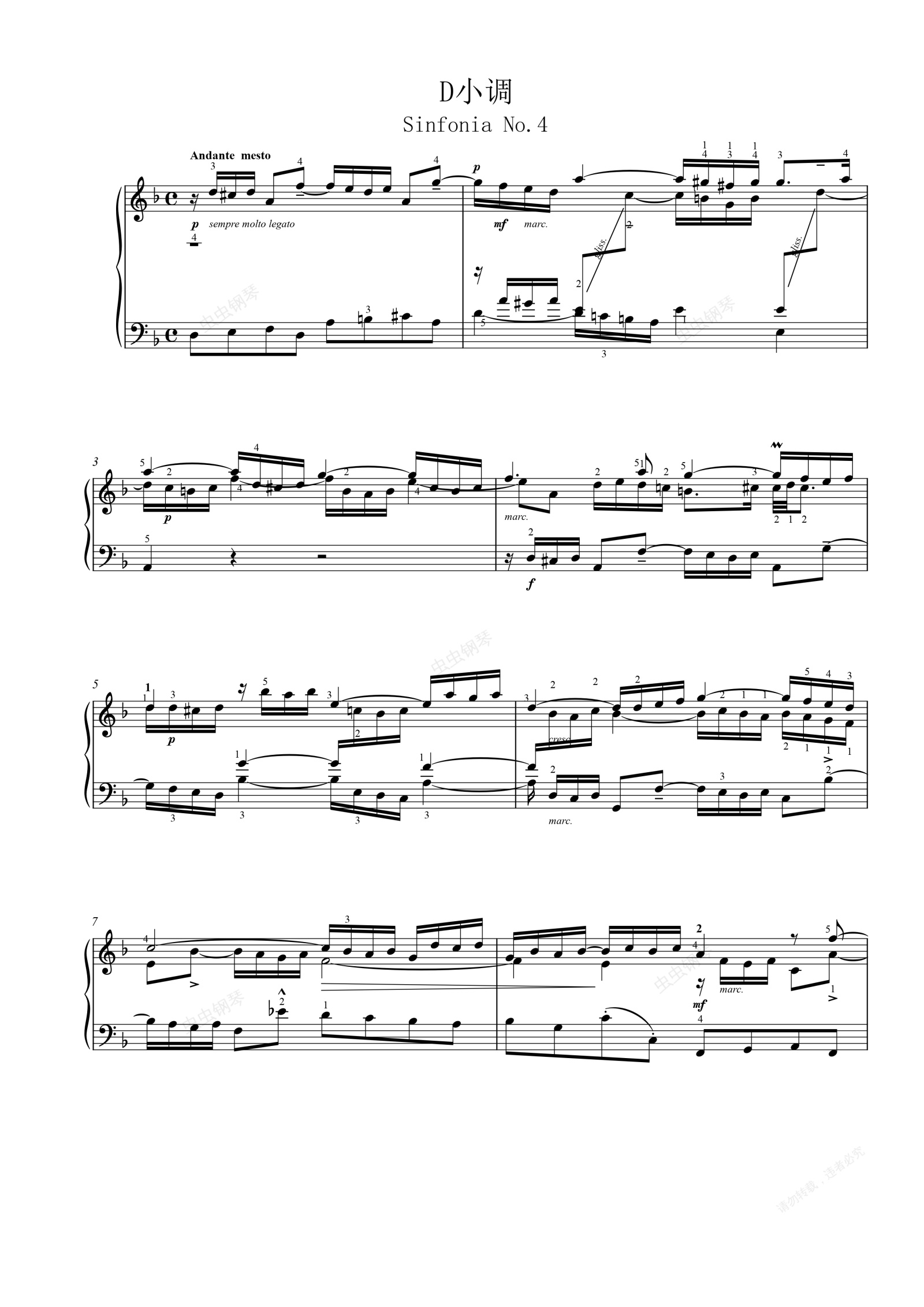 钢琴谱:三部创意曲No.4