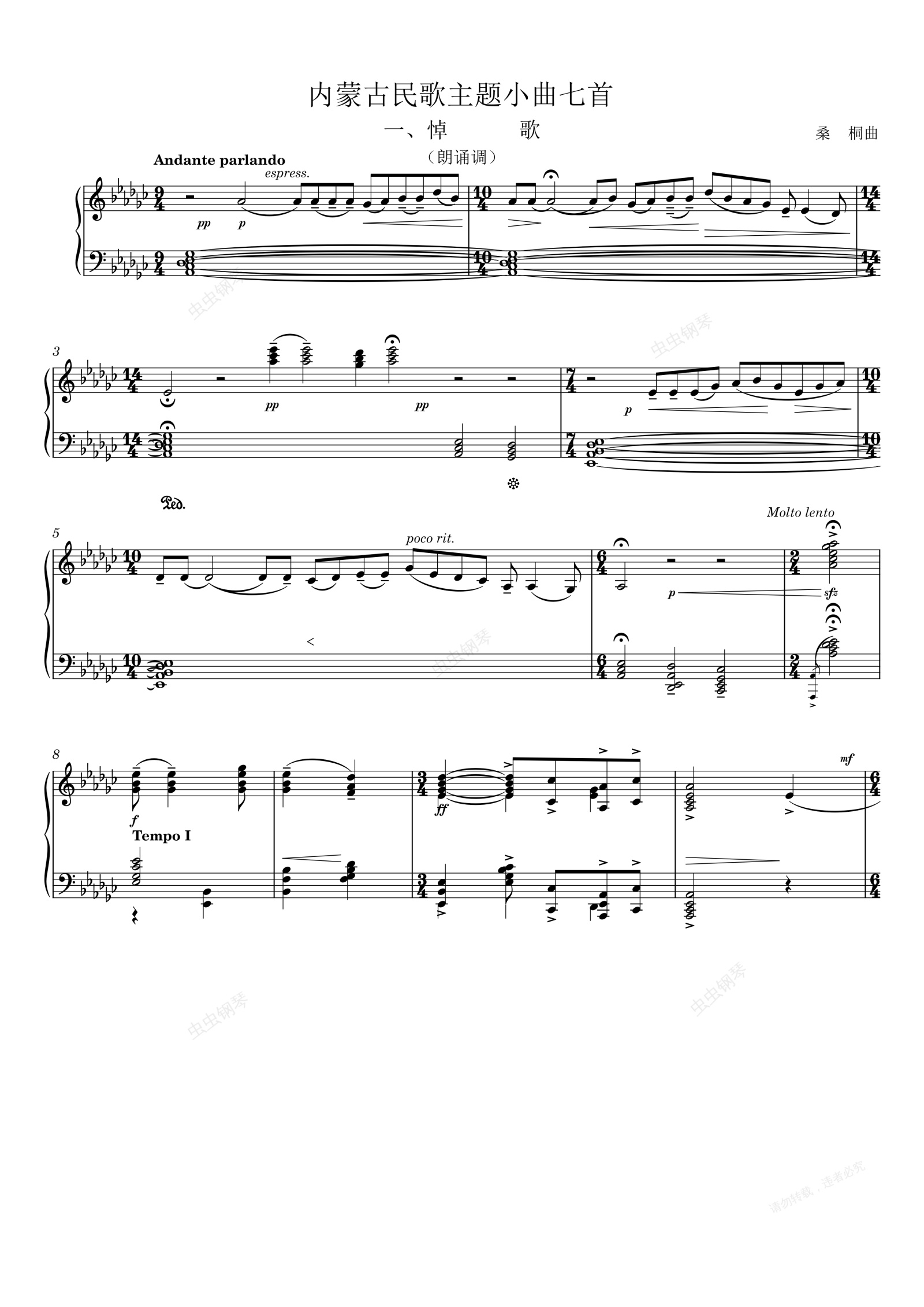 钢琴谱:内蒙古民歌主题小曲七首 一、悼歌