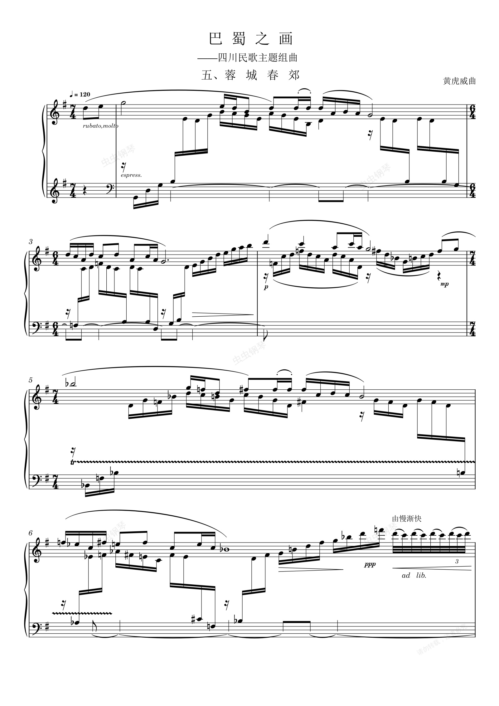 钢琴谱:巴蜀之画 五、蓉城春郊