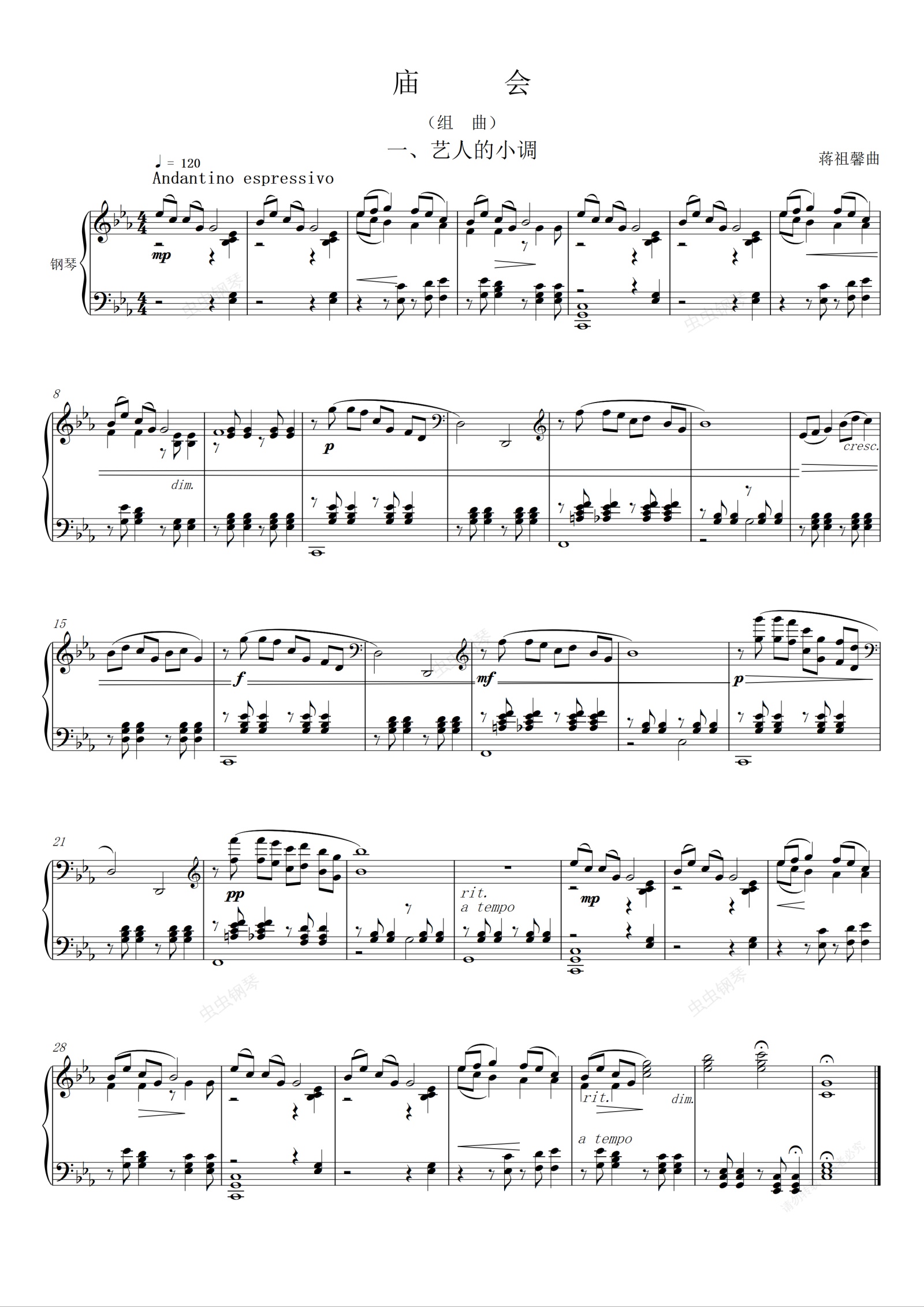 钢琴谱:庙会 一、艺人的小调