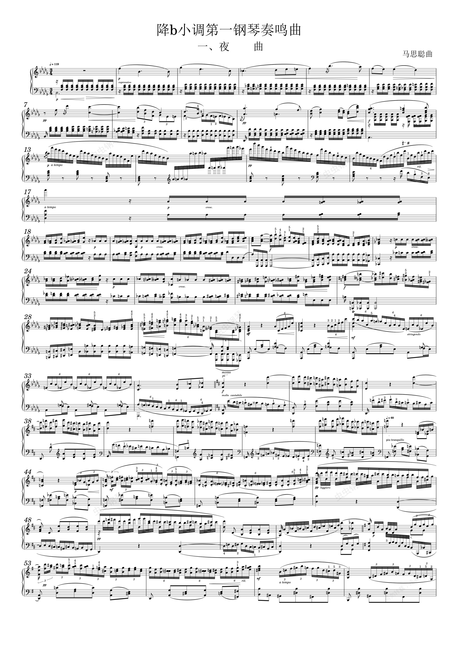 钢琴谱:降b小调第一钢琴奏鸣曲 一、夜曲