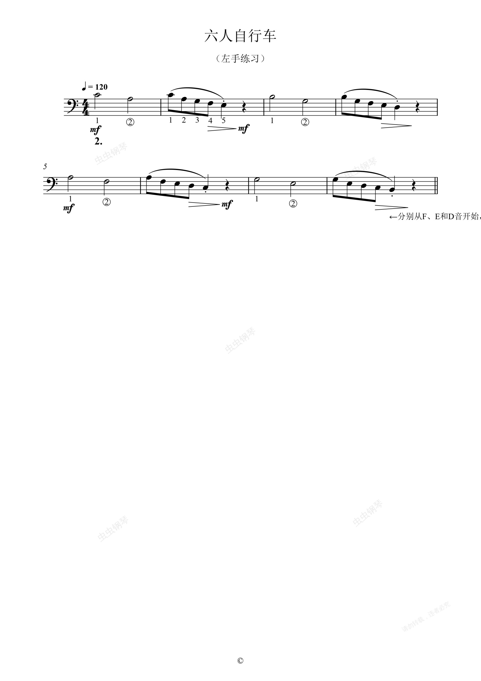 钢琴谱:单元三 六人自行车(左手练习)
