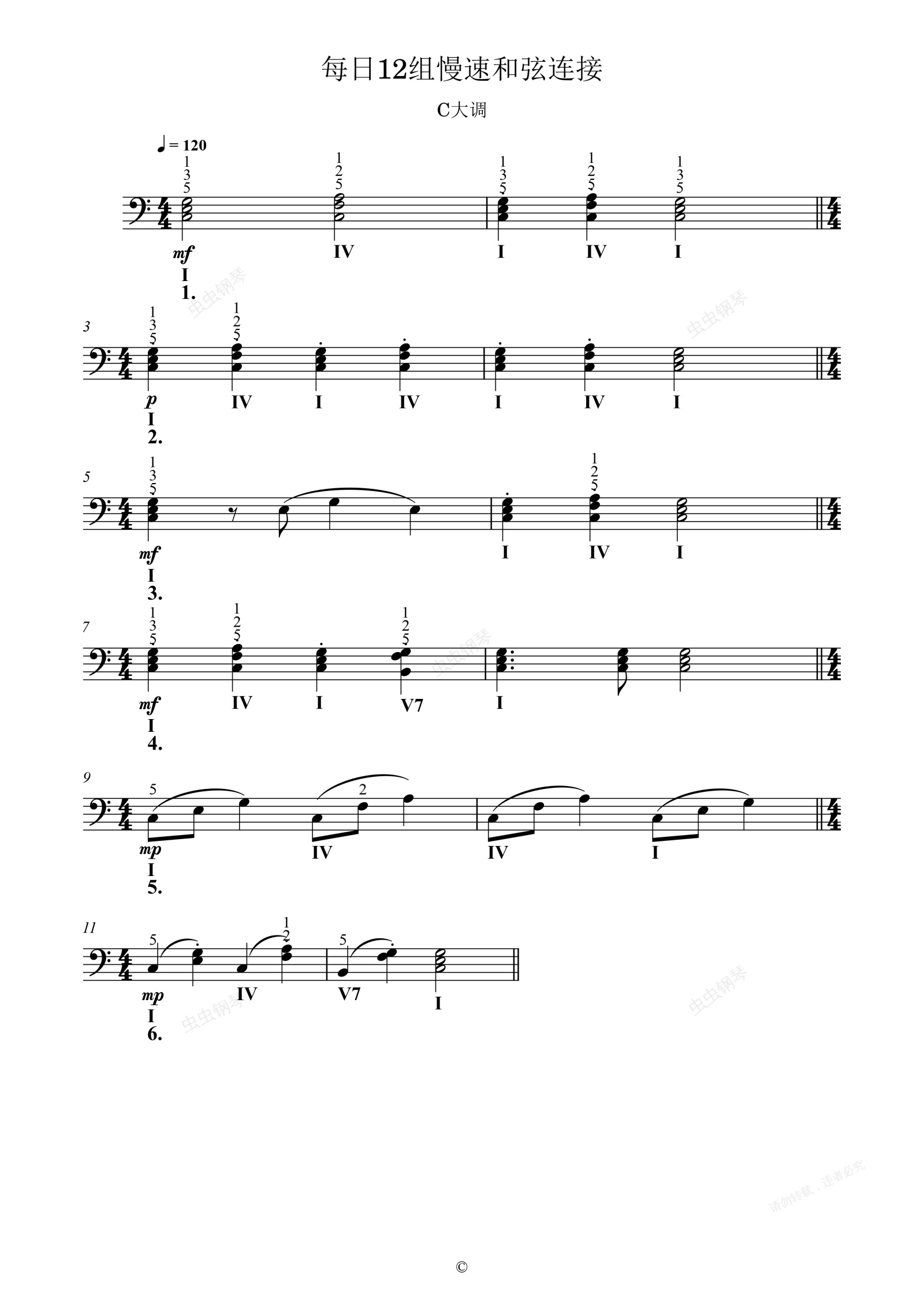 钢琴谱:单元九 每日12组慢速和弦连接(左手)