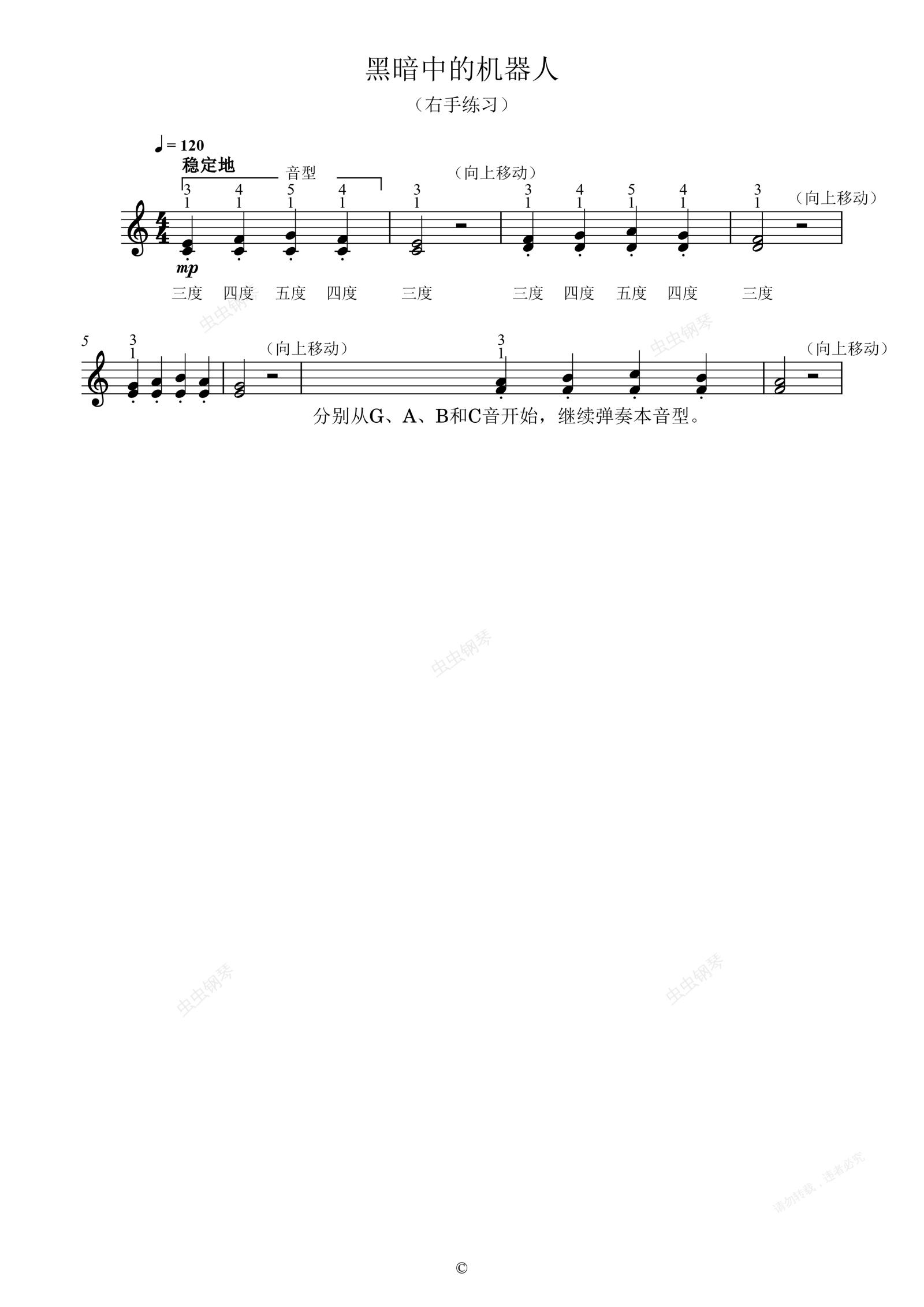 钢琴谱:单元五 黑暗中的机器人(右手练习)