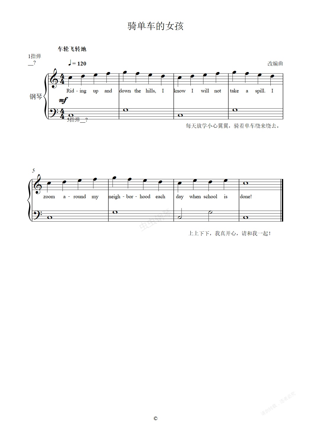钢琴谱:单元七 骑单车的女孩