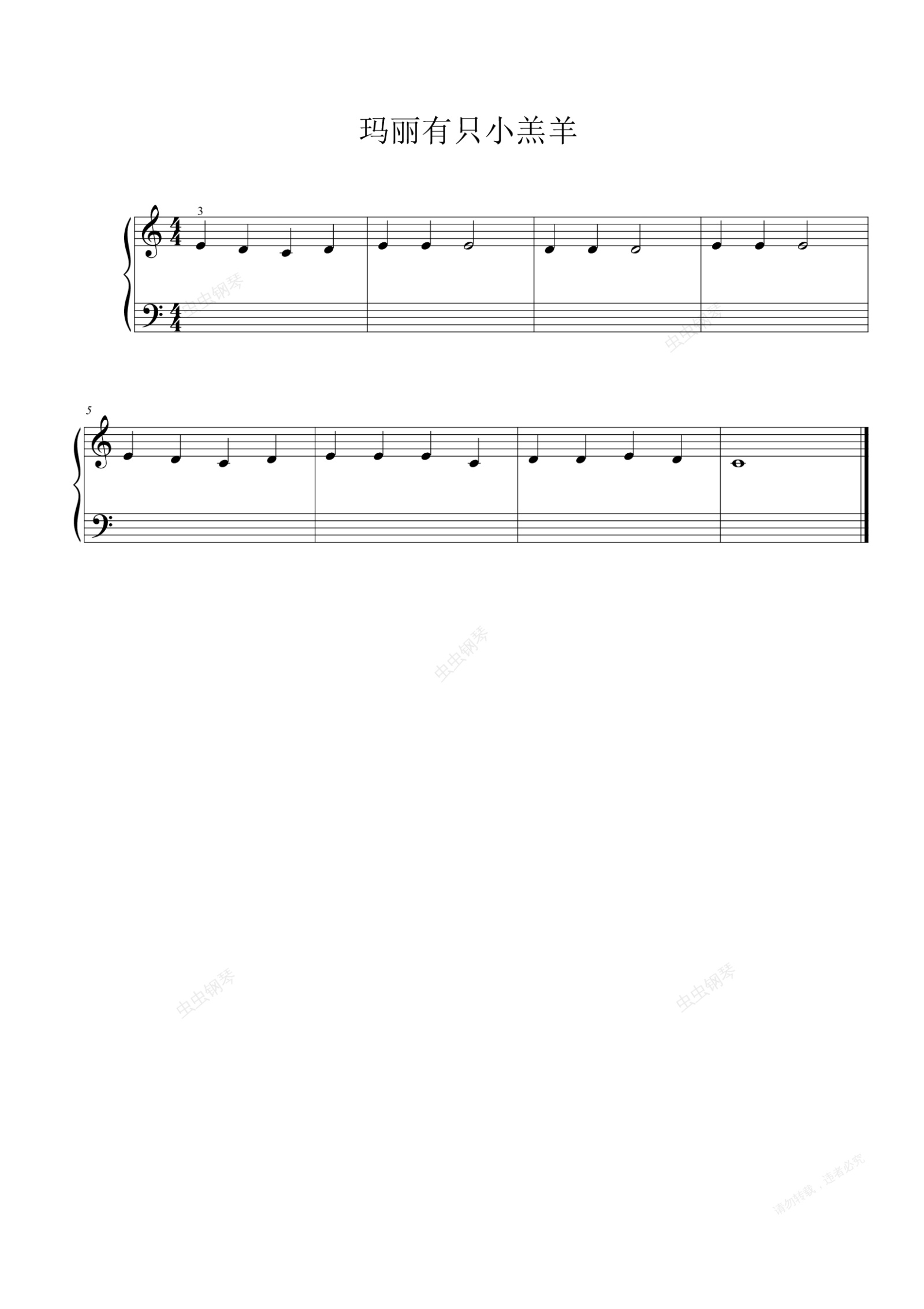 钢琴谱:玛丽有只小羔羊