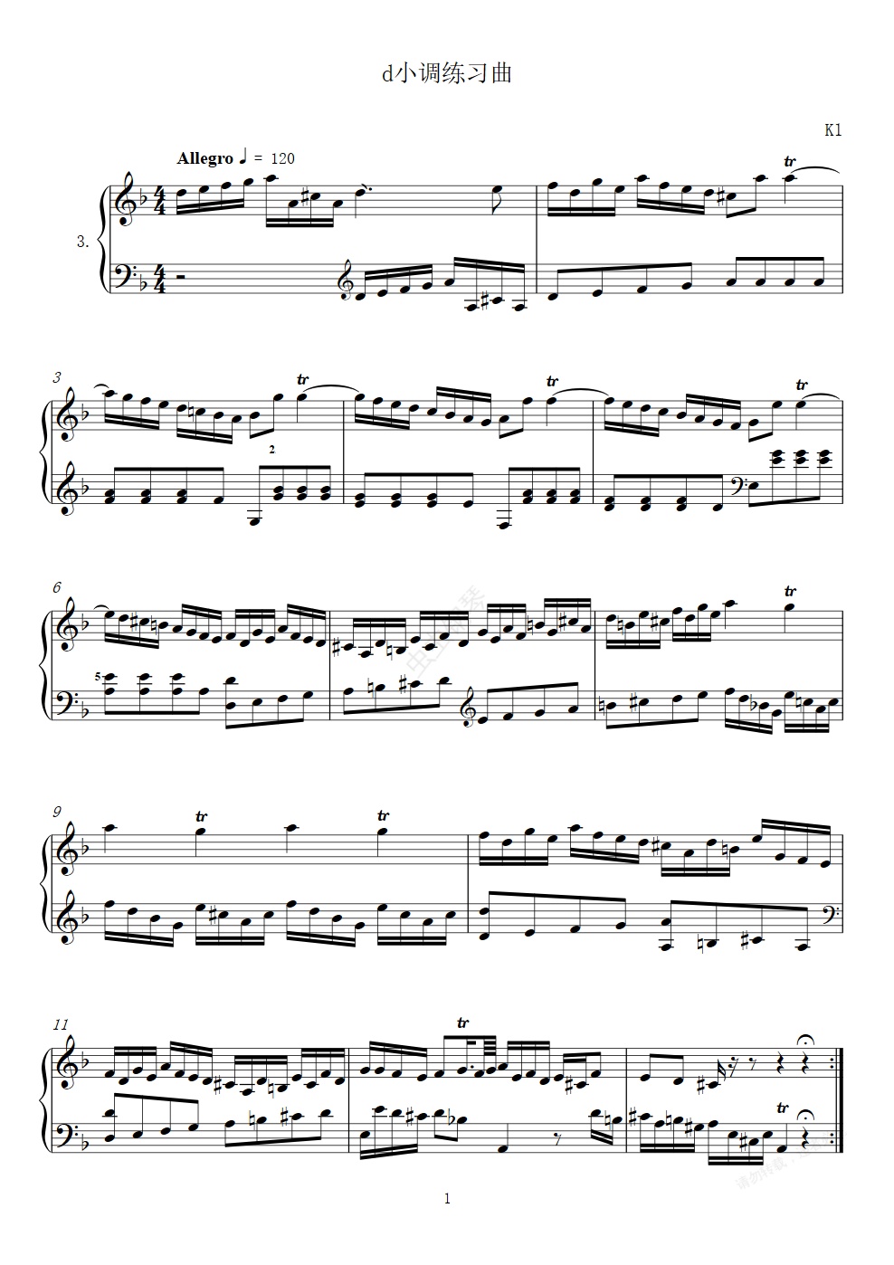钢琴谱:第3首d小调练习曲