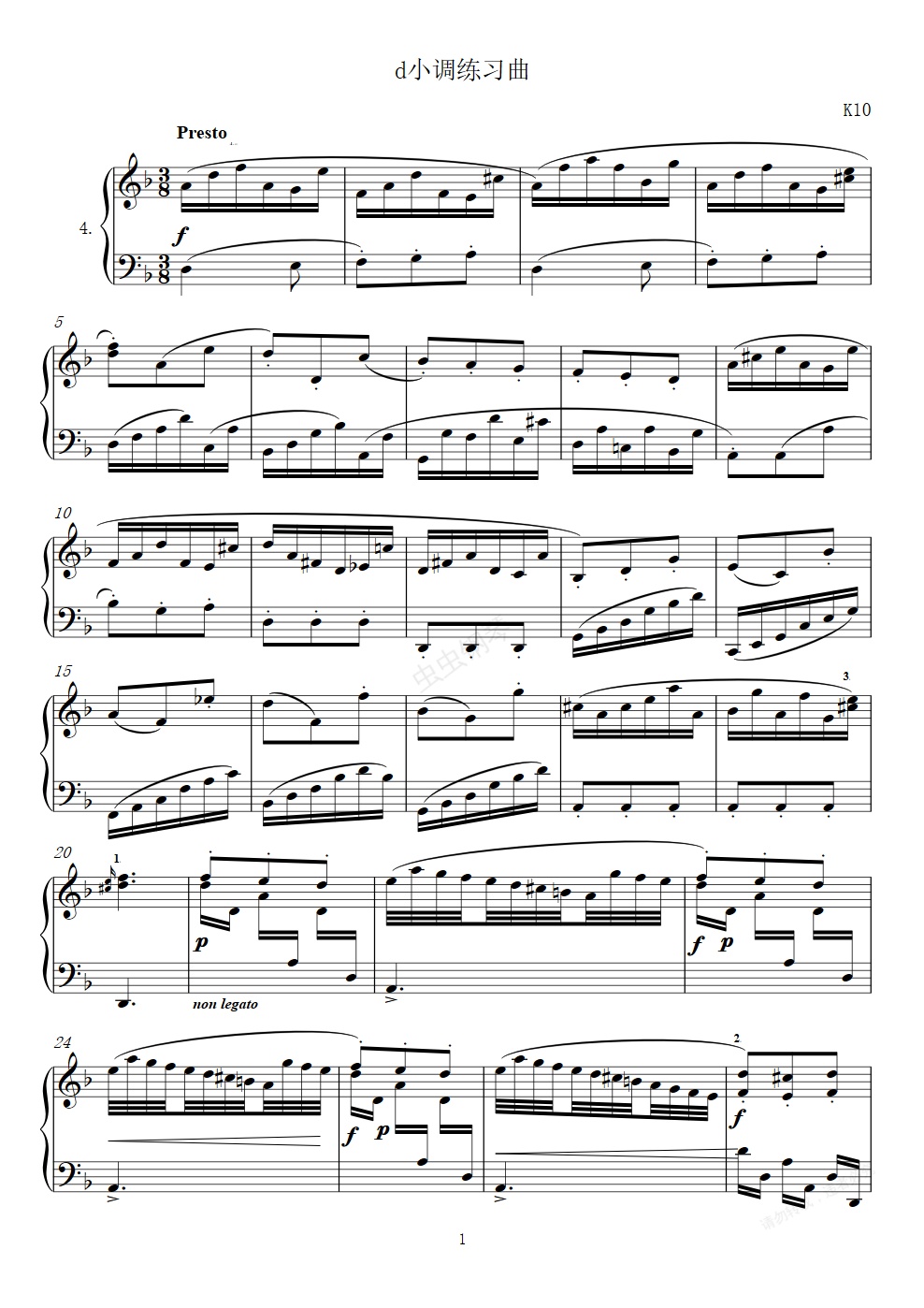 钢琴谱:第4首d小调练习曲
