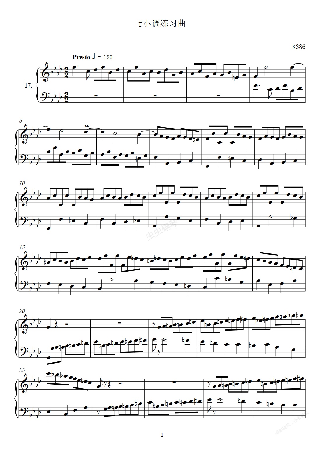 钢琴谱:第17首f小调练习曲