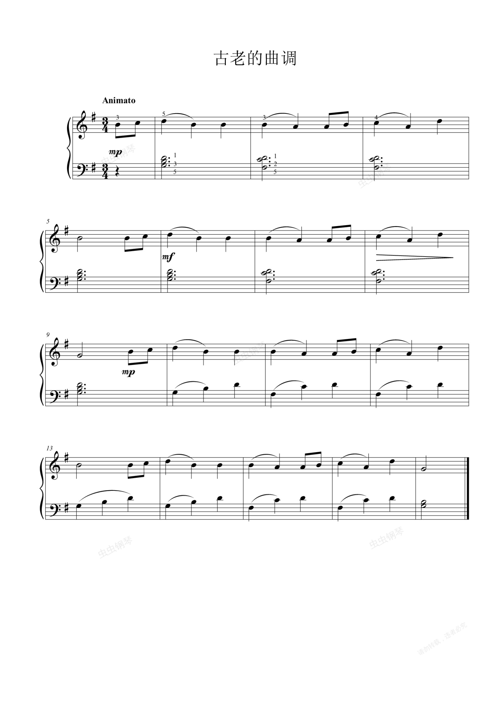 钢琴谱:一首古老的歌谣