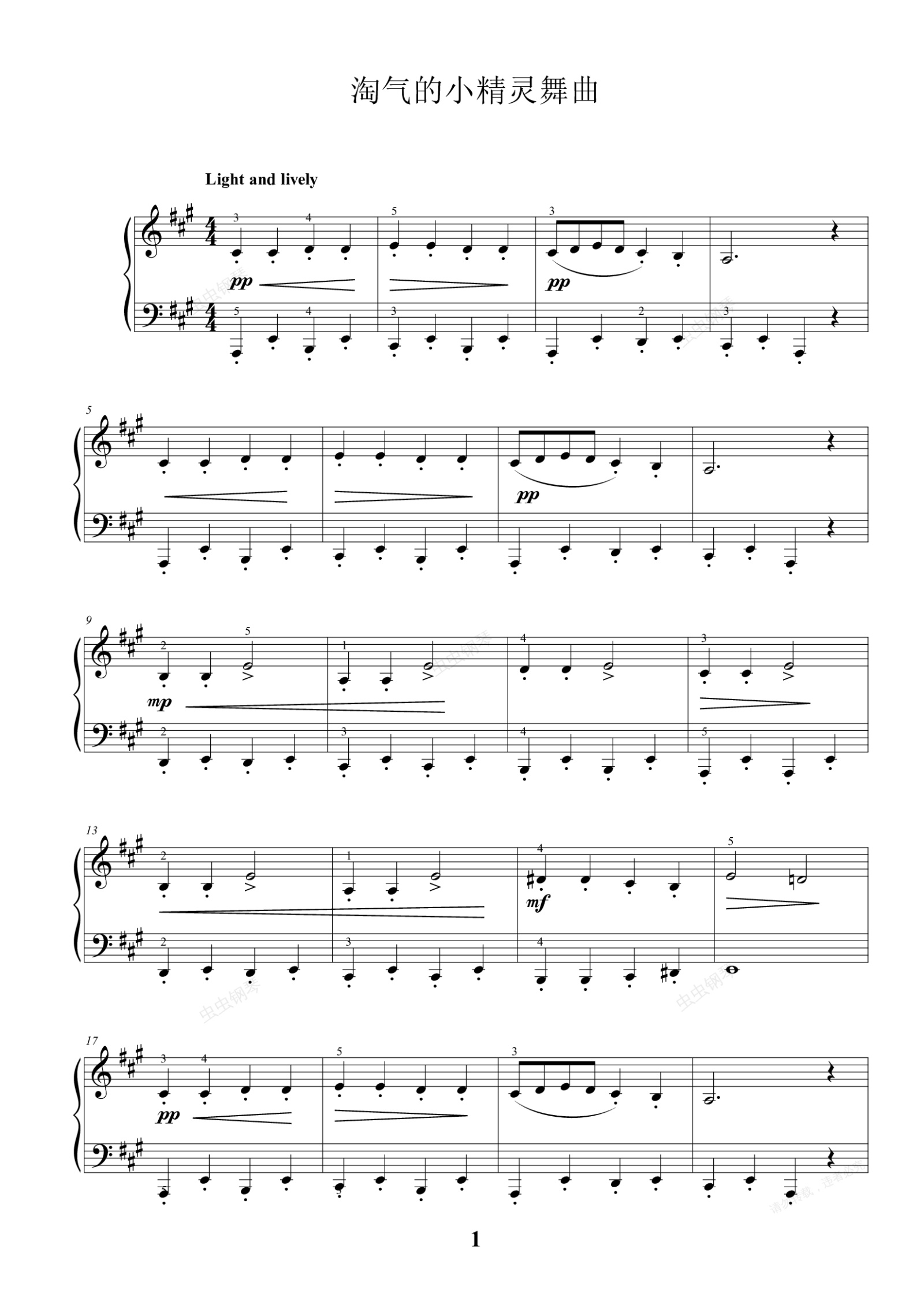 钢琴谱:淘气的小精灵舞曲
