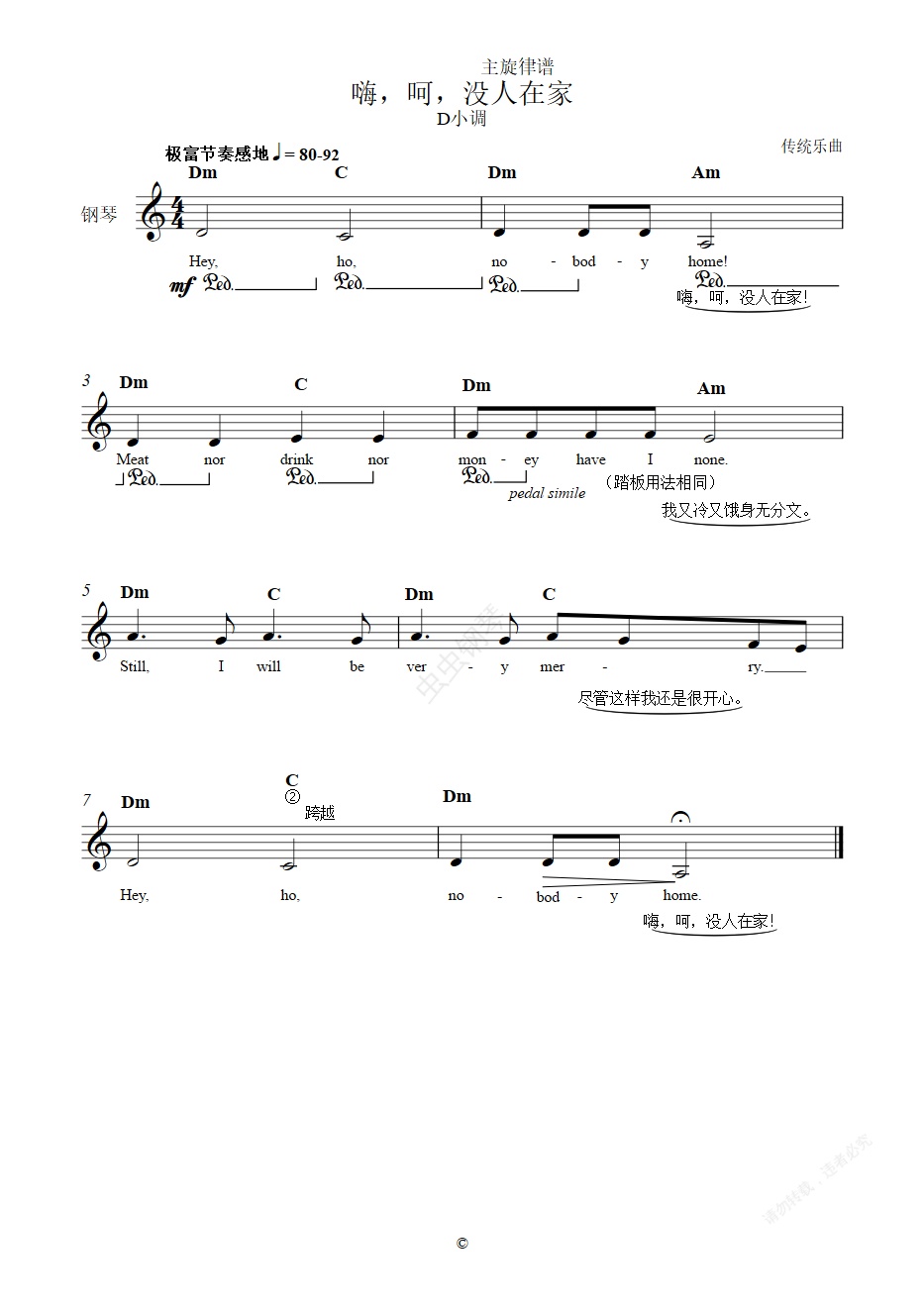 钢琴谱:单元八 嗨,呵,没人在家