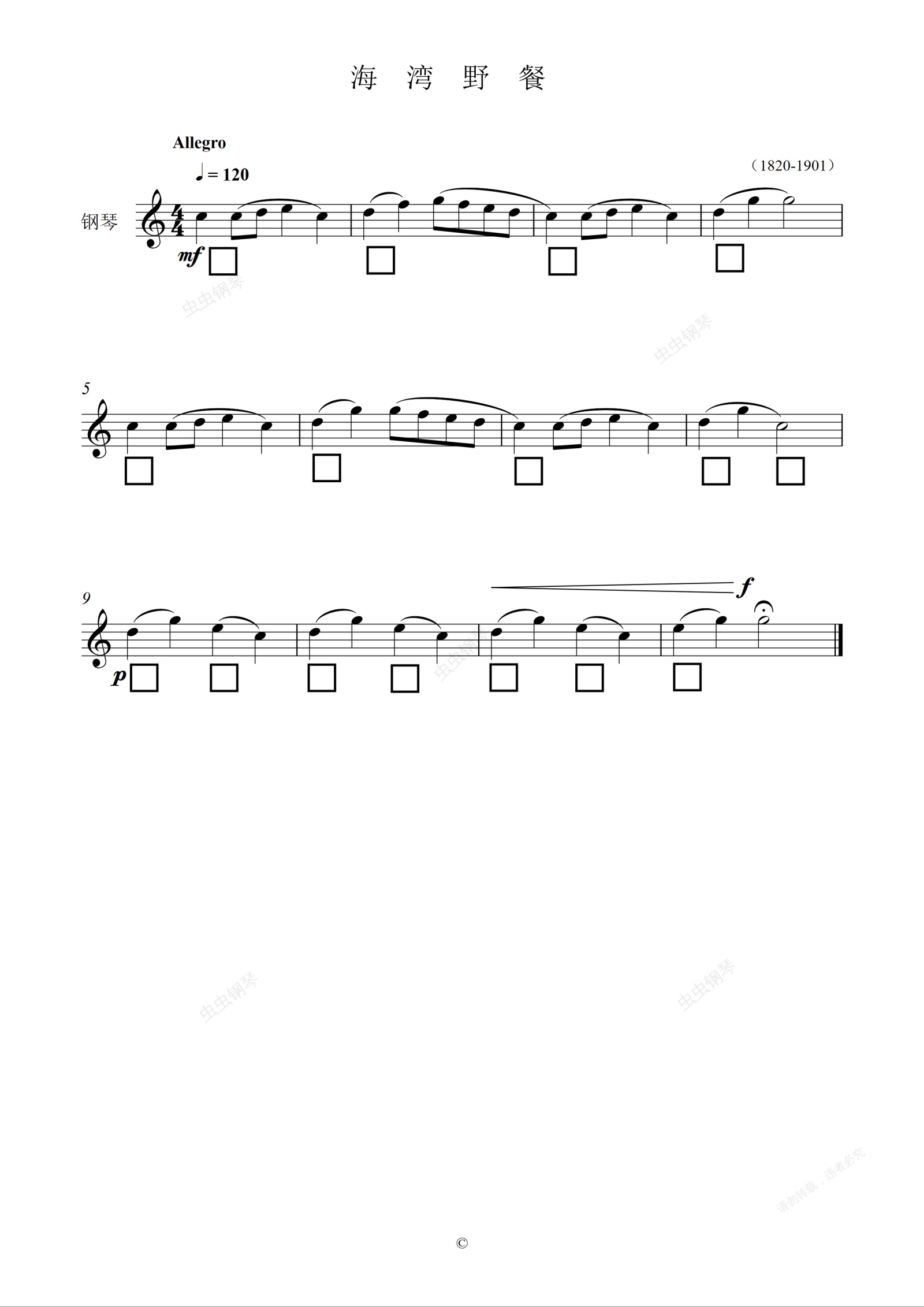 钢琴谱:单元四 海湾野餐