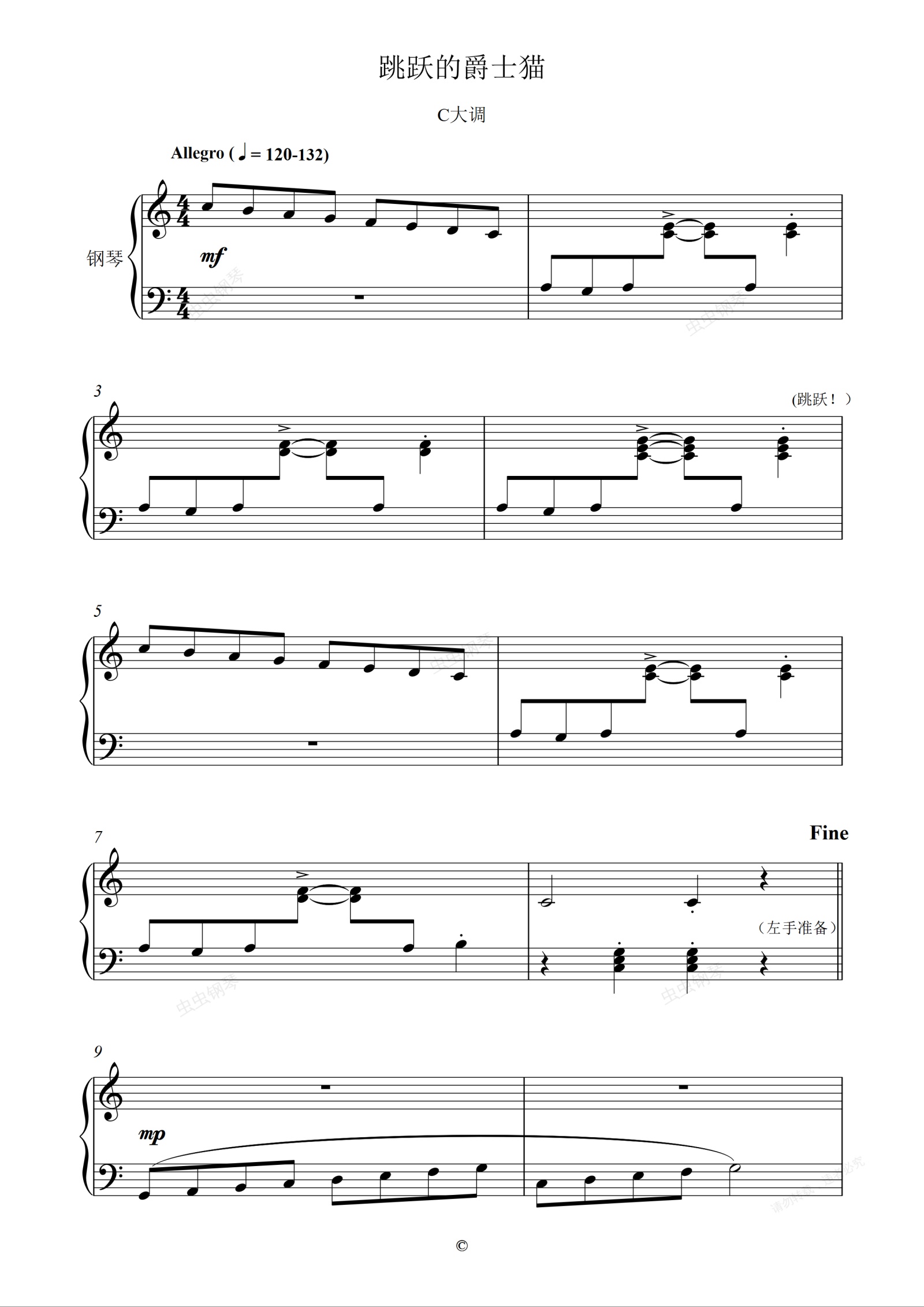 钢琴谱:单元四 跳跃的爵士猫