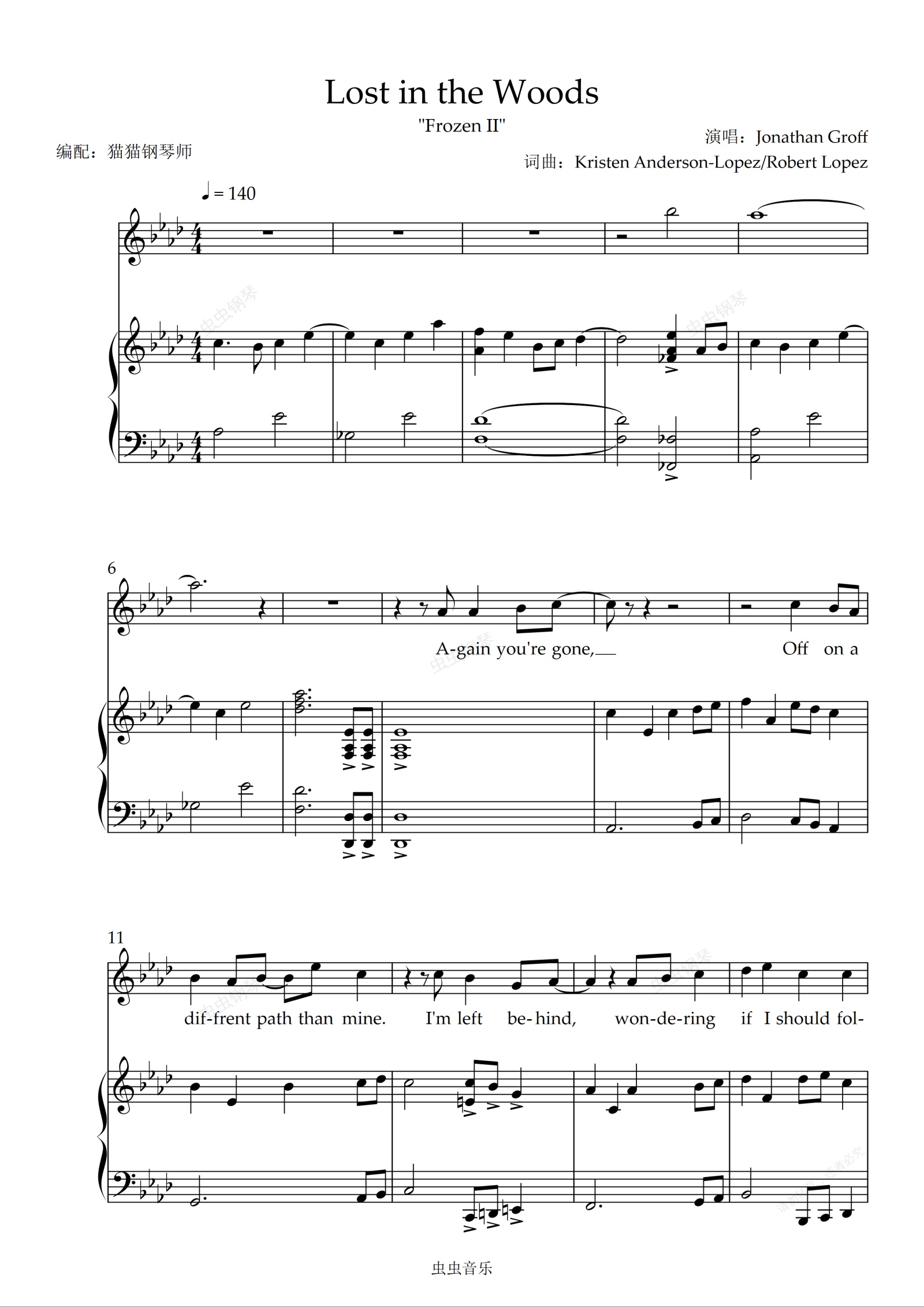 钢琴谱:Lost in the Woods - Frozen 2 《冰雪奇缘》