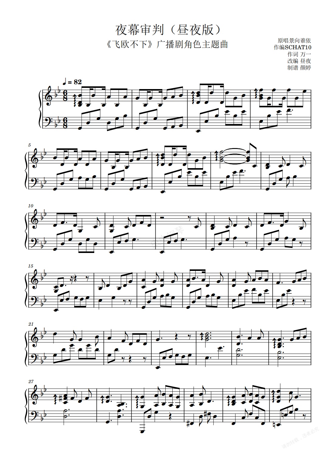 钢琴谱:《夜幕审判》(昼夜版)————《飞鸥不下》广播剧角色曲