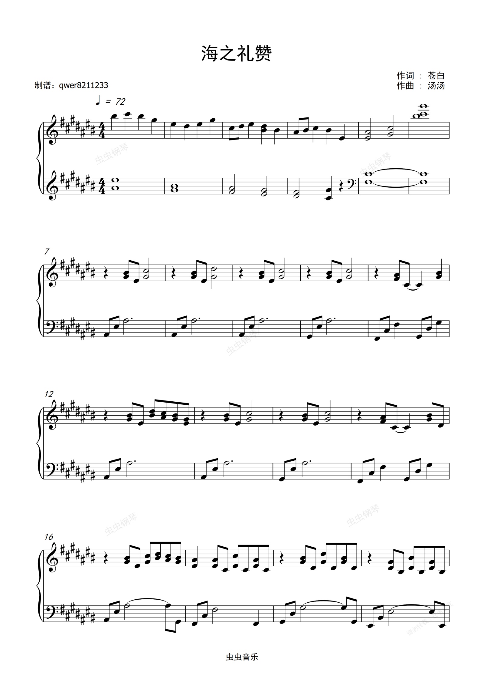 钢琴谱:泛音堂 - 海之礼赞 (karaoke)