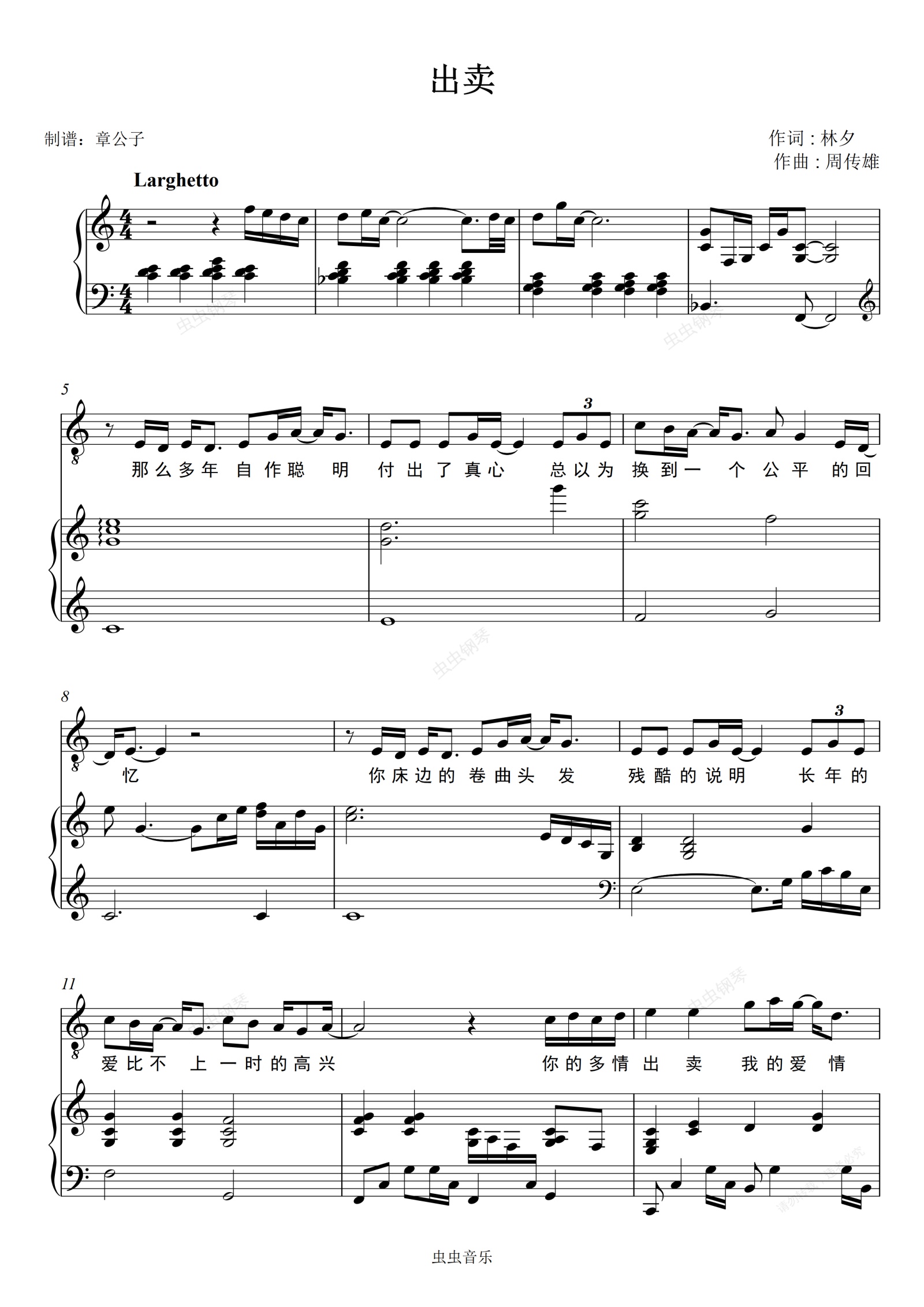 钢琴谱:出卖 - 周传雄 完美弹唱(伴奏)谱