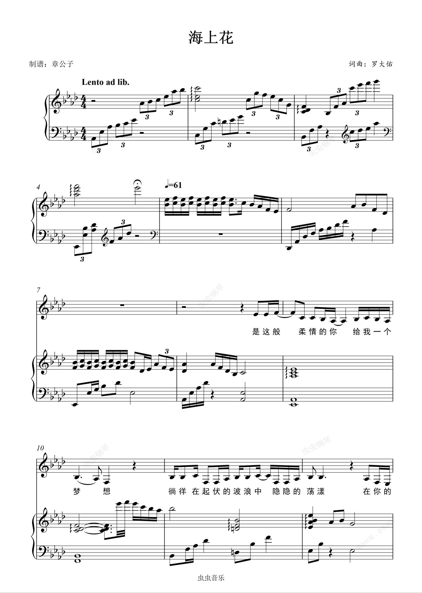 钢琴谱:海上花 - 蔡琴 完美弹唱(伴奏)谱