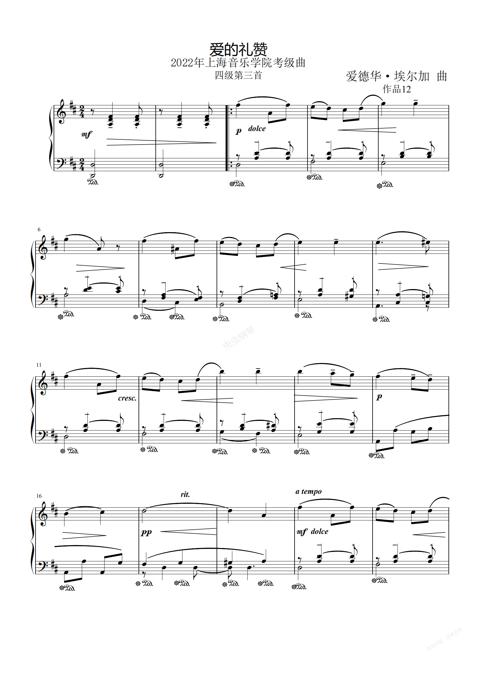 钢琴谱:4级爱的礼赞(上音2022考级曲)