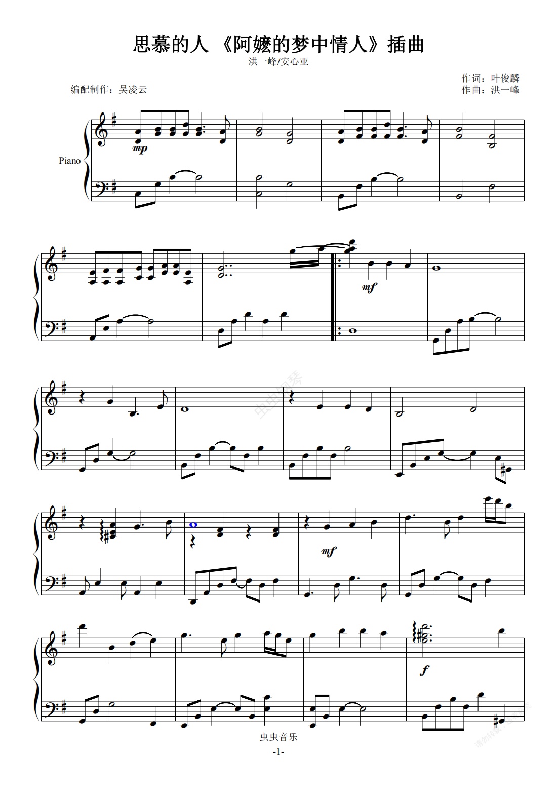 钢琴谱:思慕的人 《阿嬷的梦中情人》插曲 吴凌云钢琴独奏版