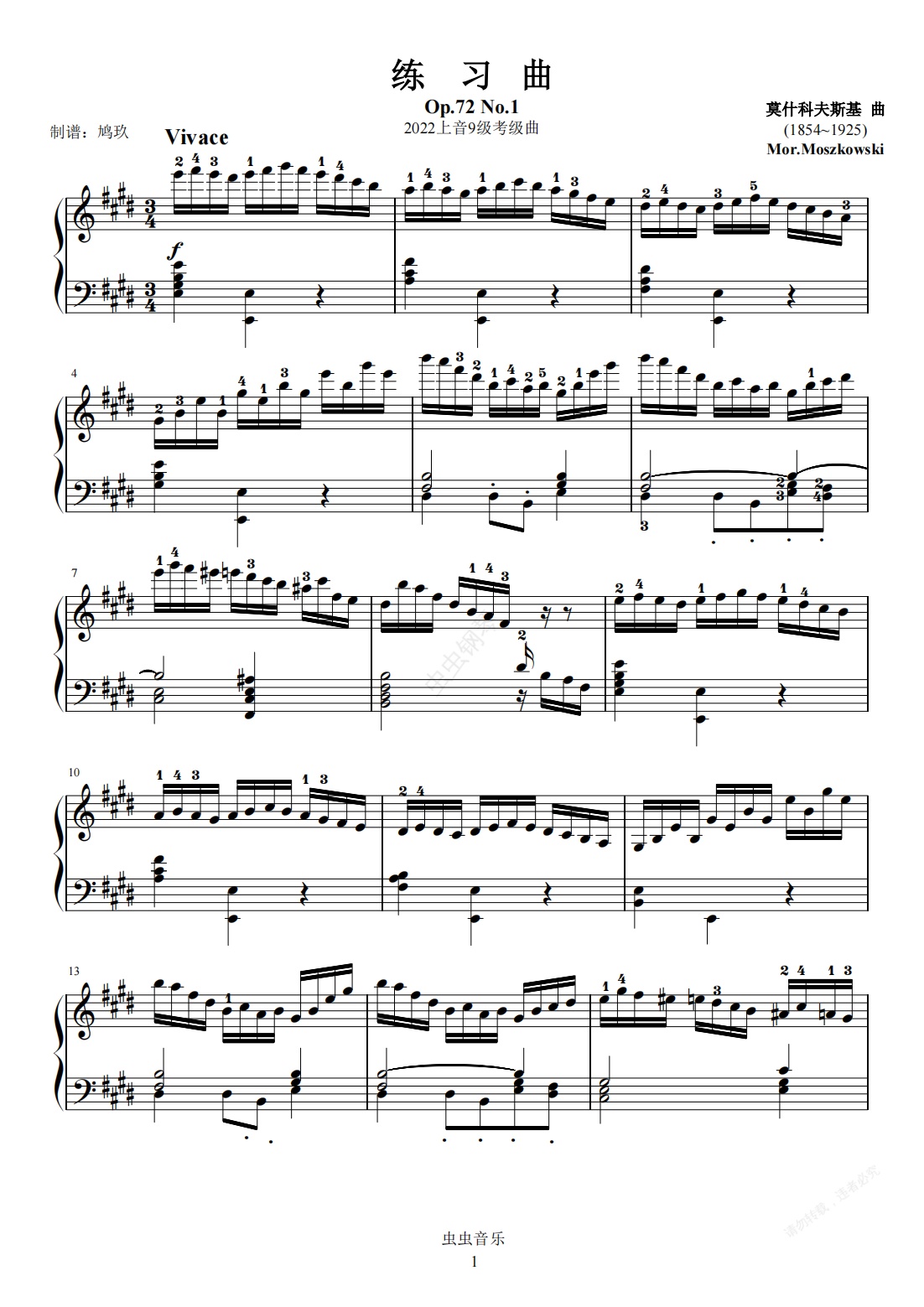 钢琴谱:9级莫什科夫斯基练习曲(72之1)上音2022考级曲