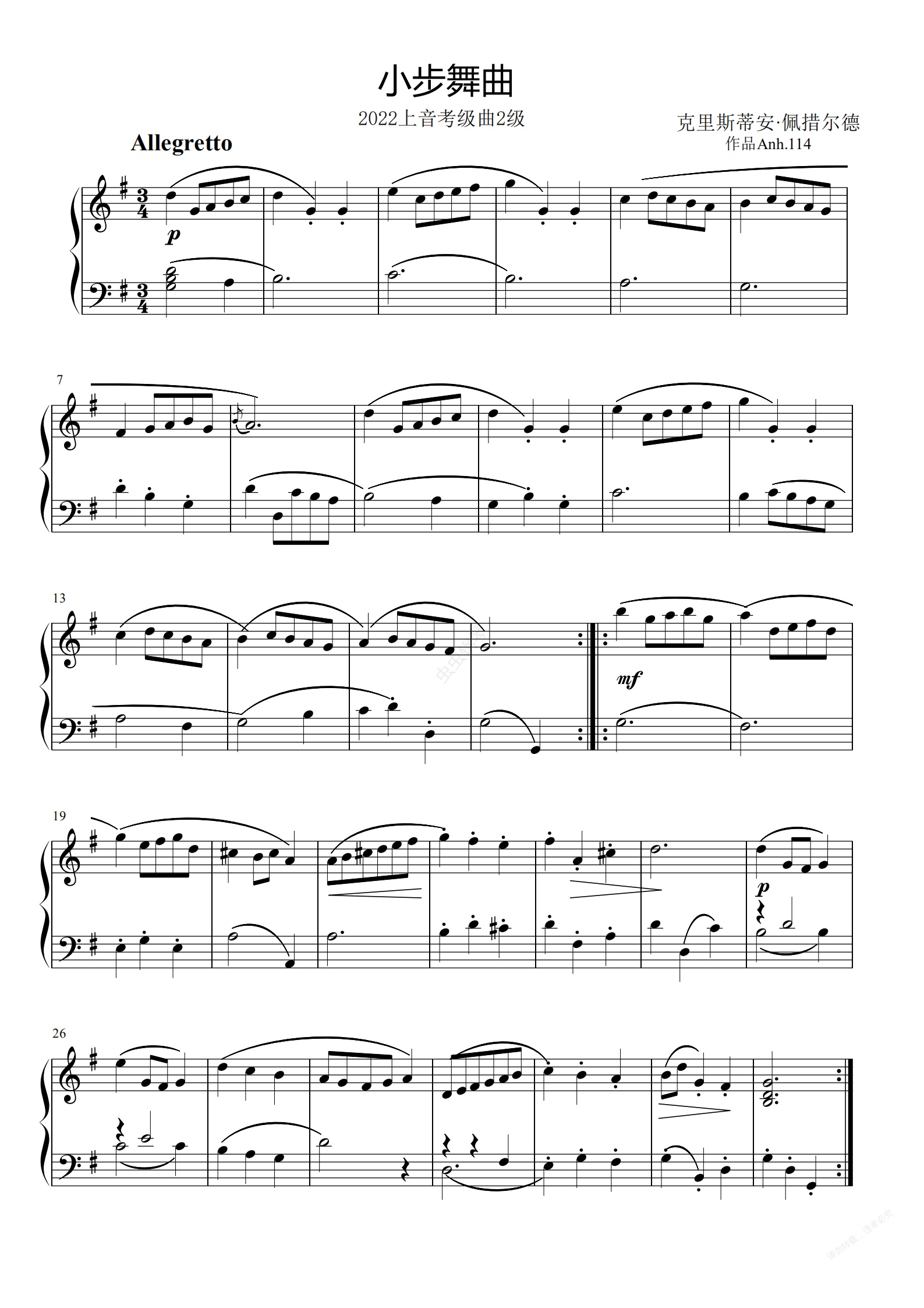 钢琴谱:2级小步舞曲(上音2022考级曲)