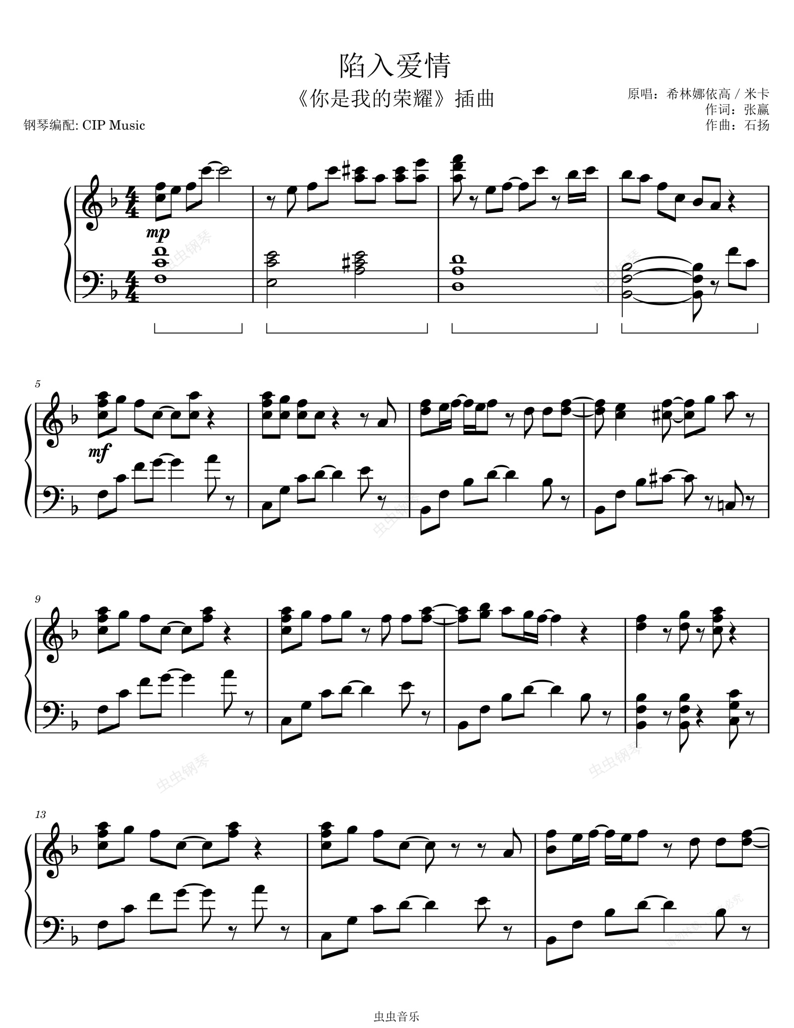 钢琴谱:《陷入爱情》原调版 - 《你是我的荣耀》插曲