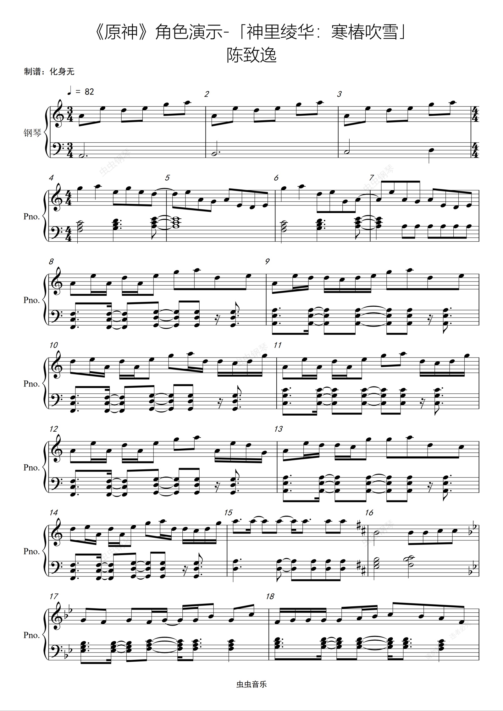 钢琴谱:原神角色演示 - 神里绫华:寒椿吹雪 - 背景音乐BGM