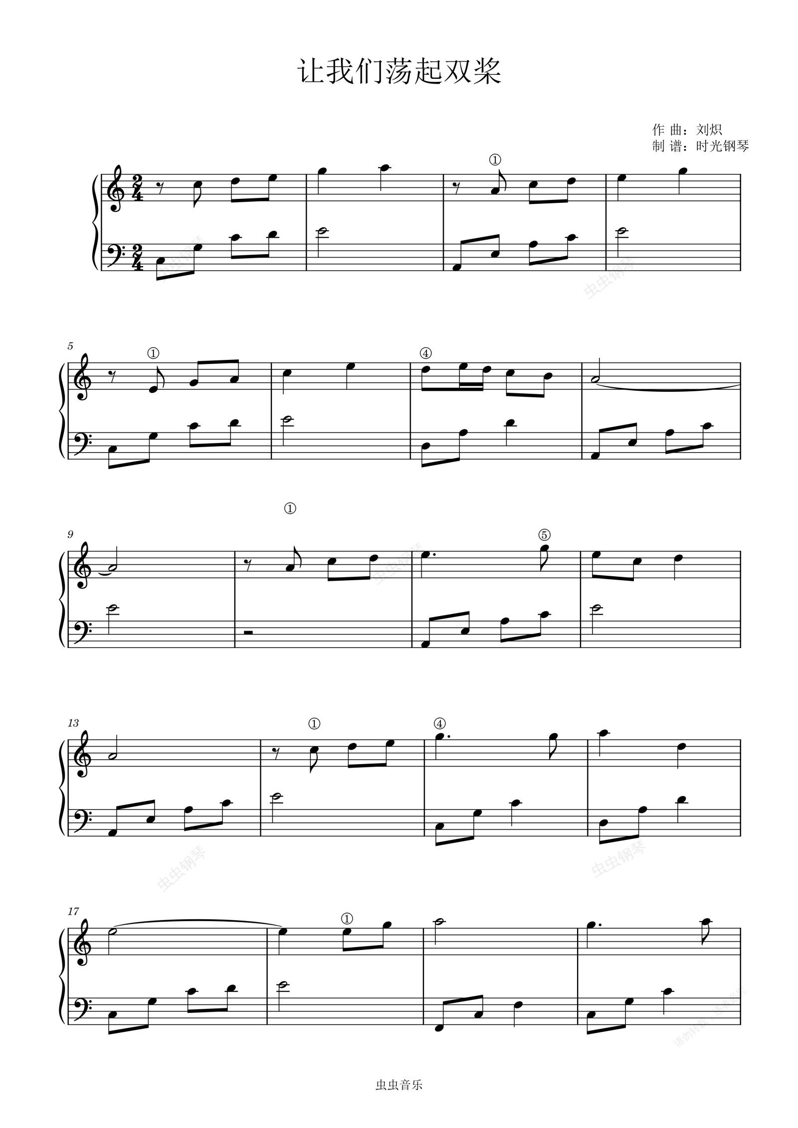 钢琴谱:让我们荡起双桨