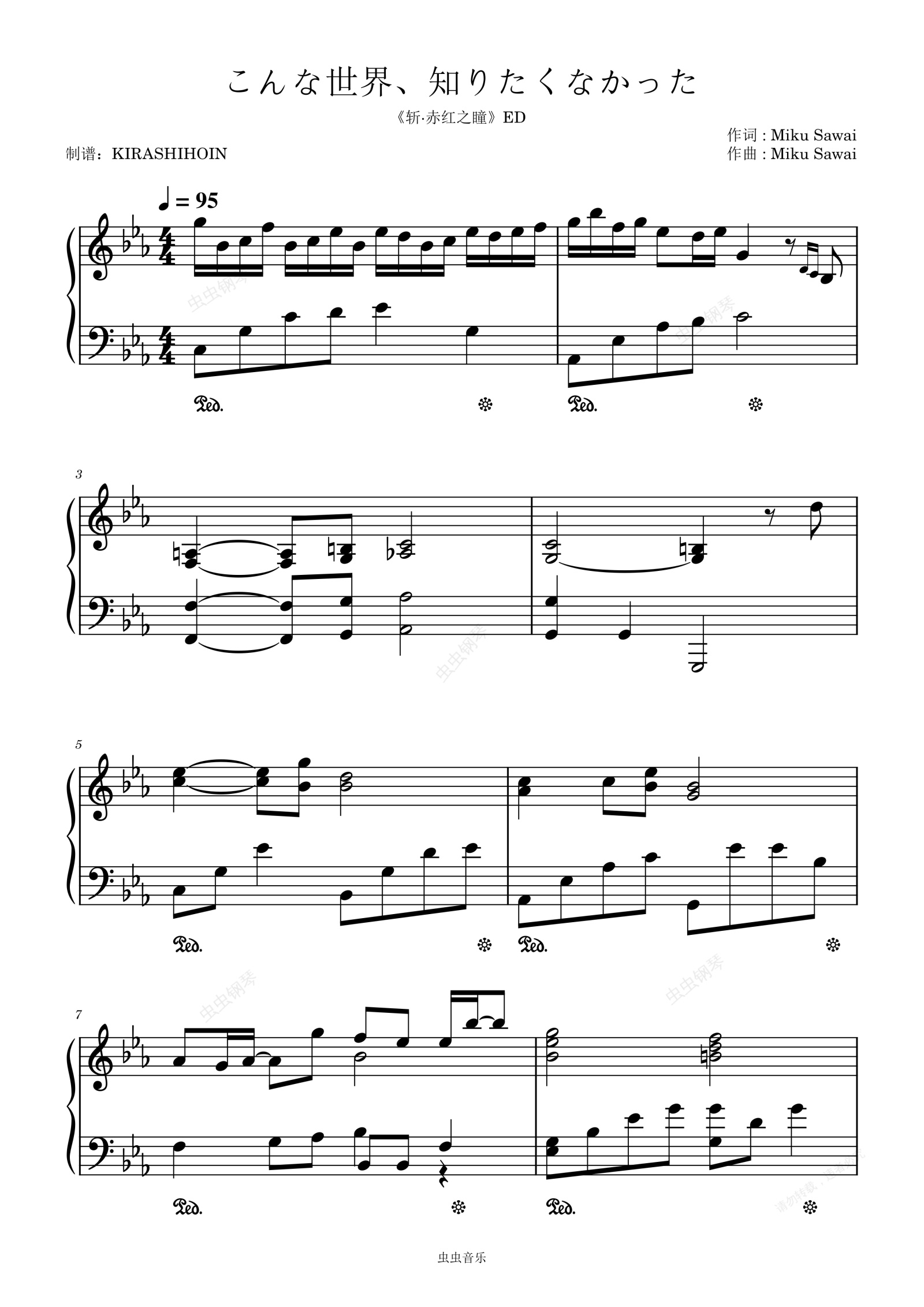 钢琴谱:こんな世界、知りたくなかった(《斩·赤红之瞳》ED)- 沢井美空