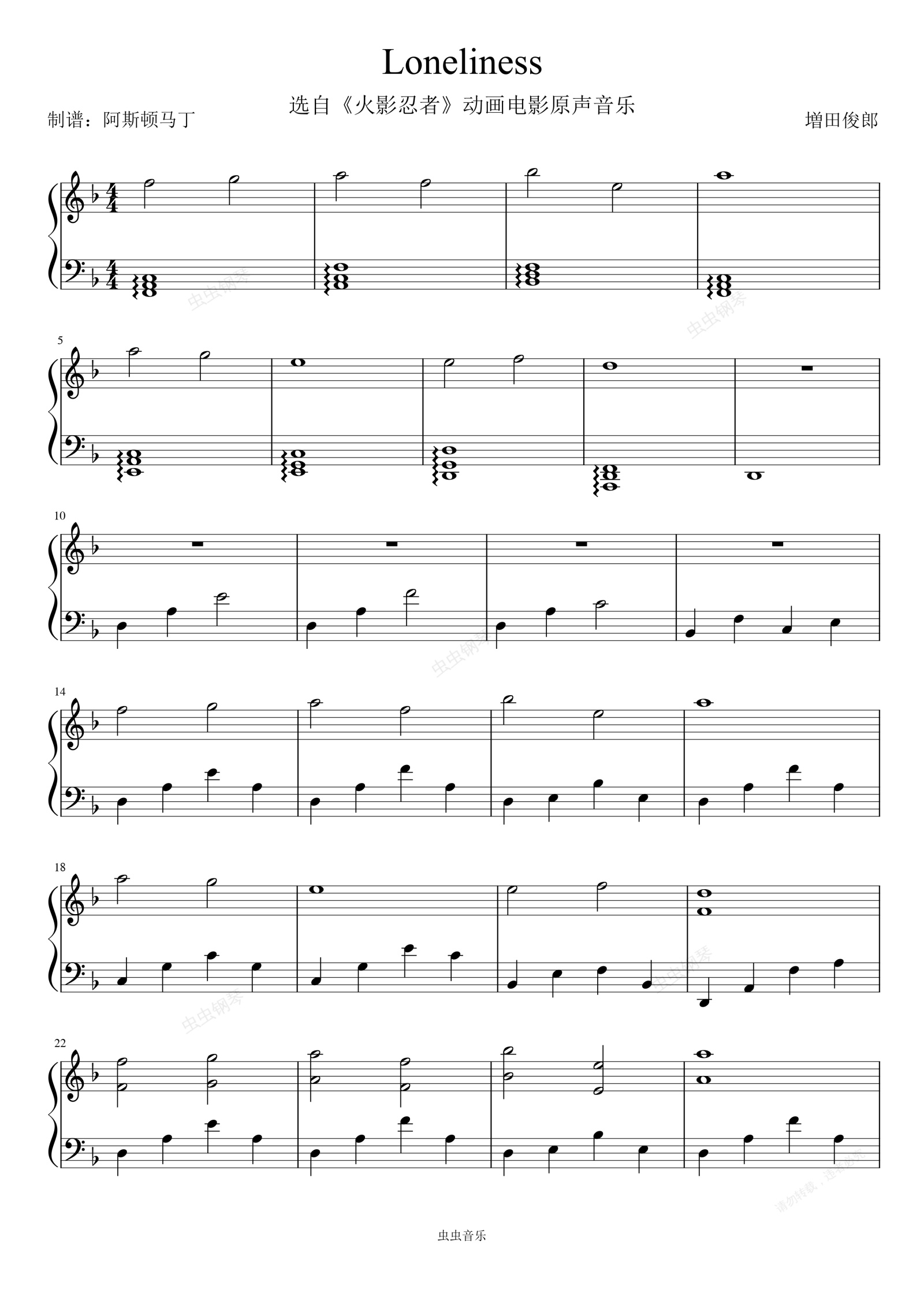钢琴谱:Loneliness《火影忍者》动画电影原声音乐