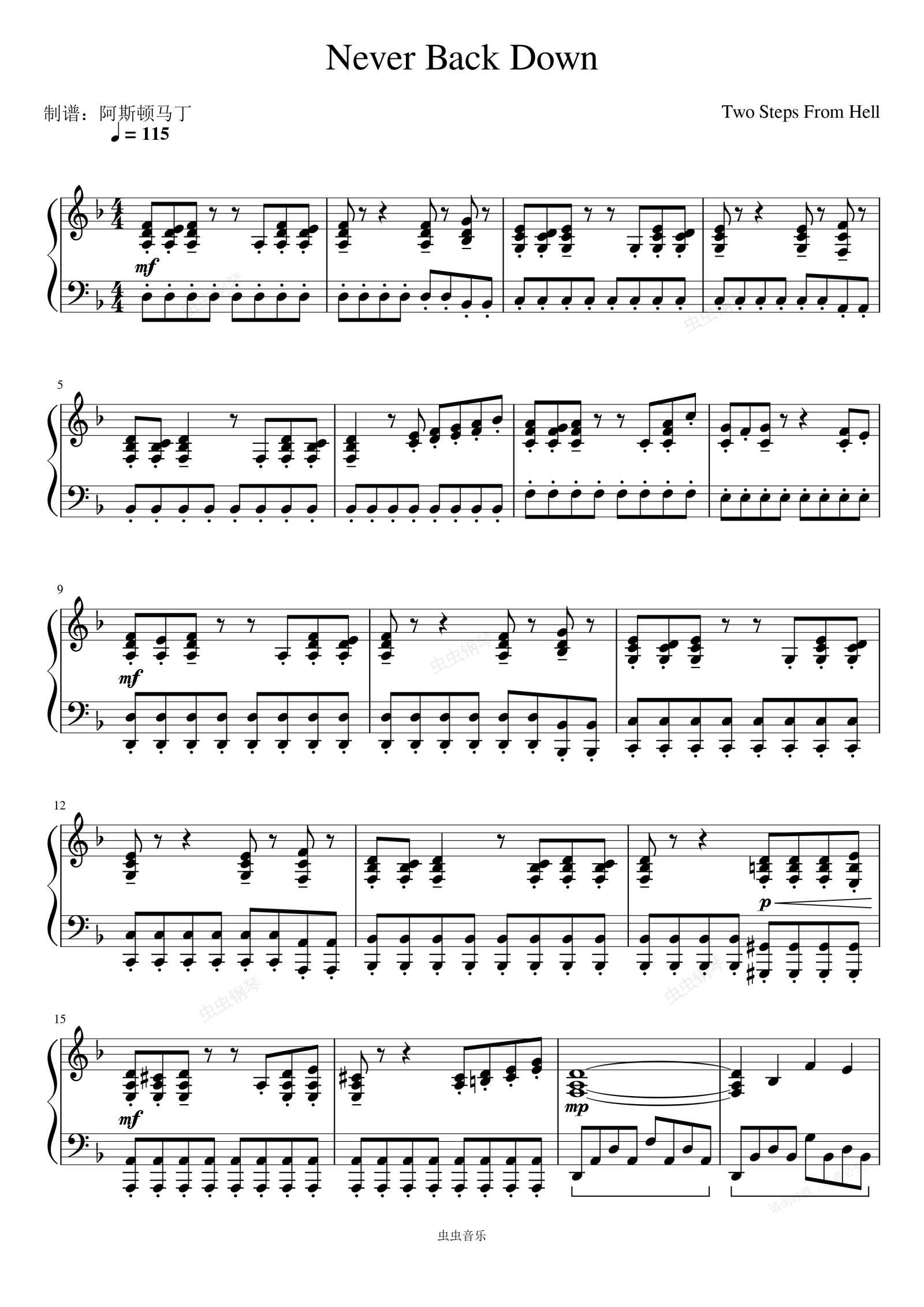 钢琴谱:Never Back Down【Two Steps From Hell】