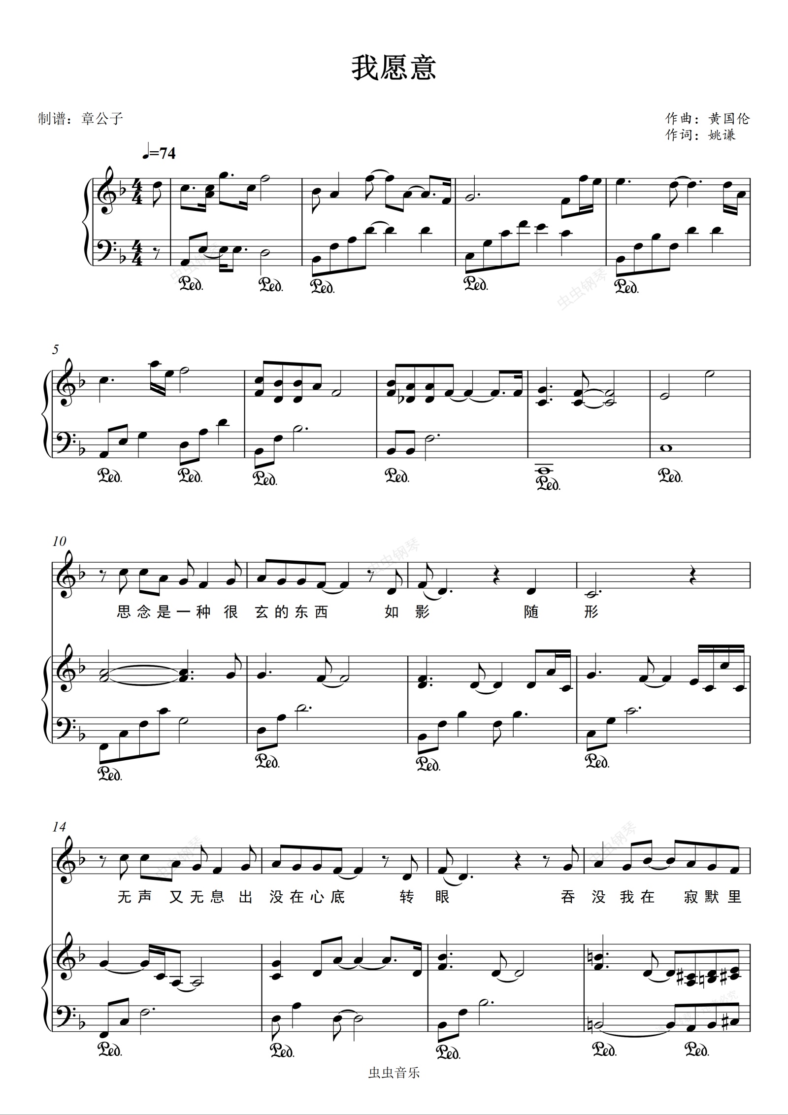 钢琴谱:我愿意 - 杨洋 (live 男版) 弹唱(伴奏)谱