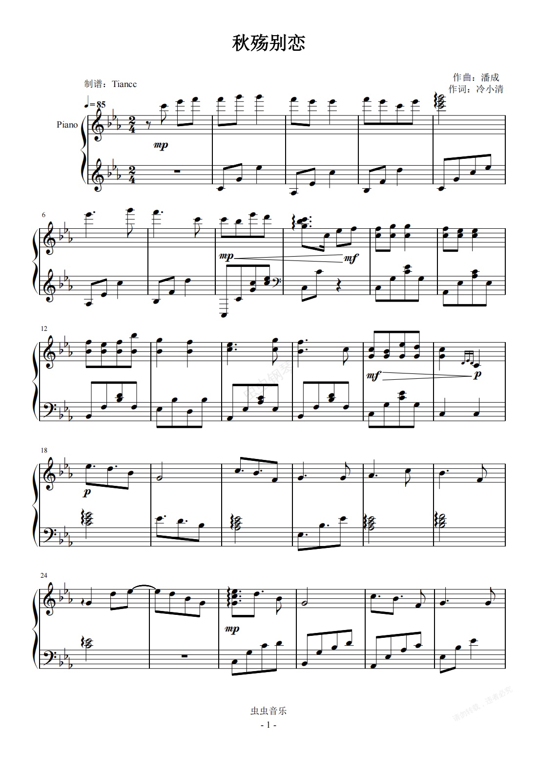 钢琴谱:《秋殇别恋》完美演奏版,299难度,
