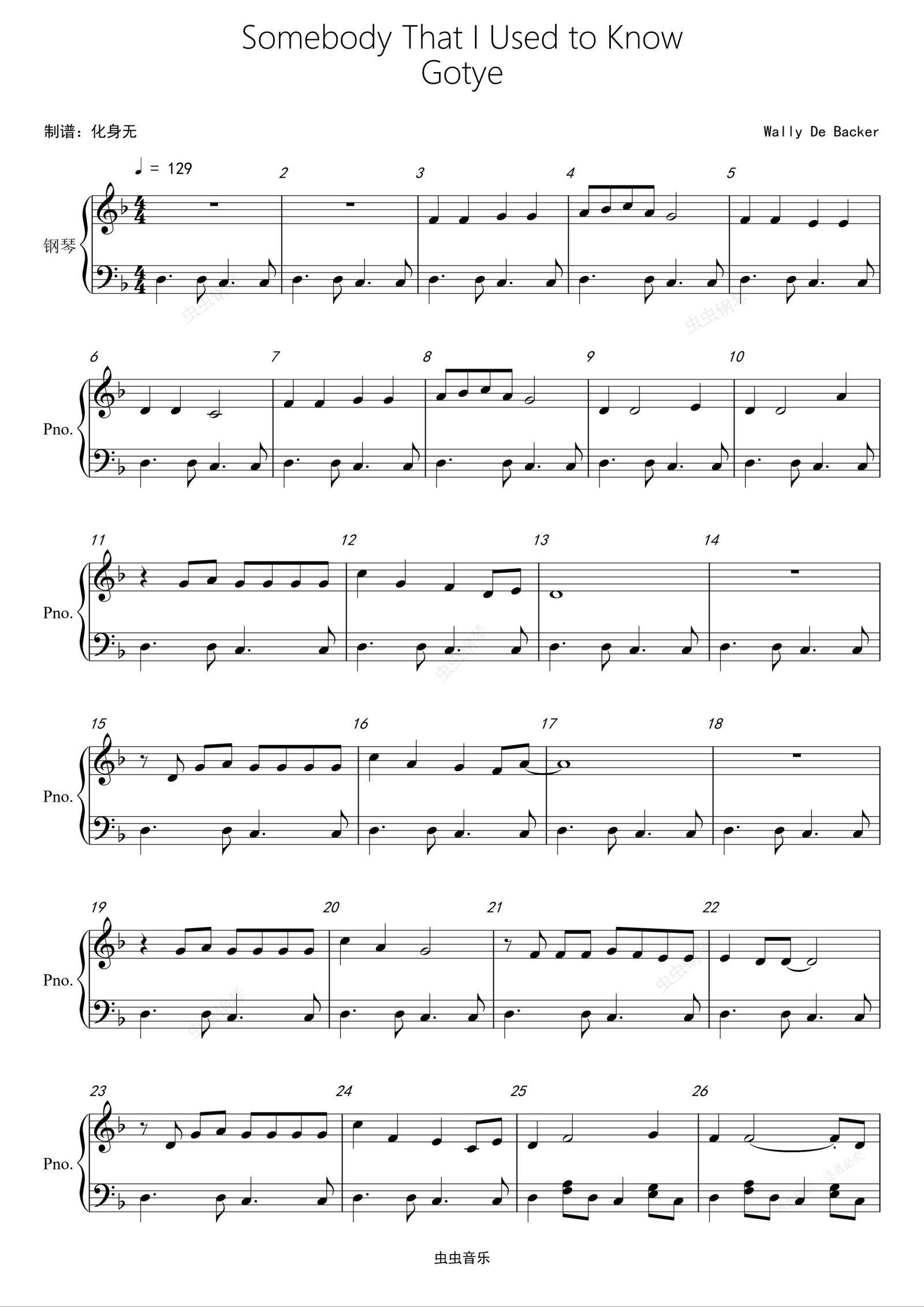 钢琴谱:Somebody That I Used to Know