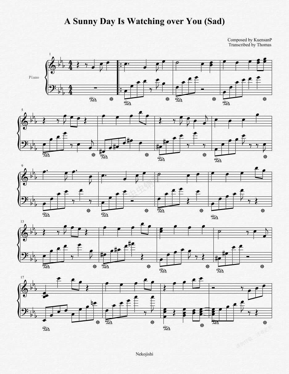 钢琴谱:A Sunny Day Is Watching over You (Sad) (举头三尺天气晴悲伤版)