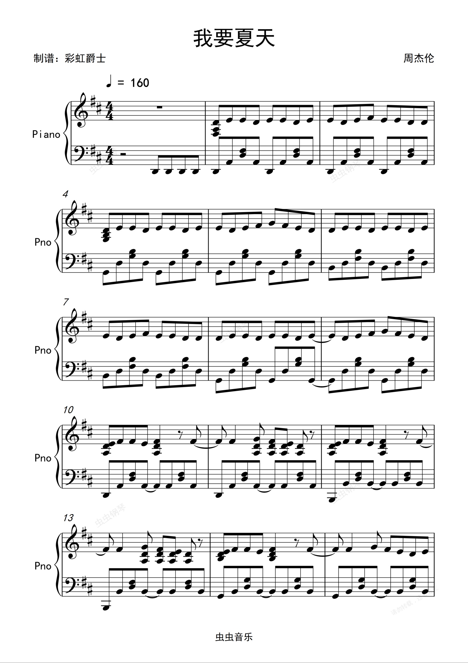 钢琴谱:我要夏天 中国新歌声导师开场 周杰伦 简单 完整版