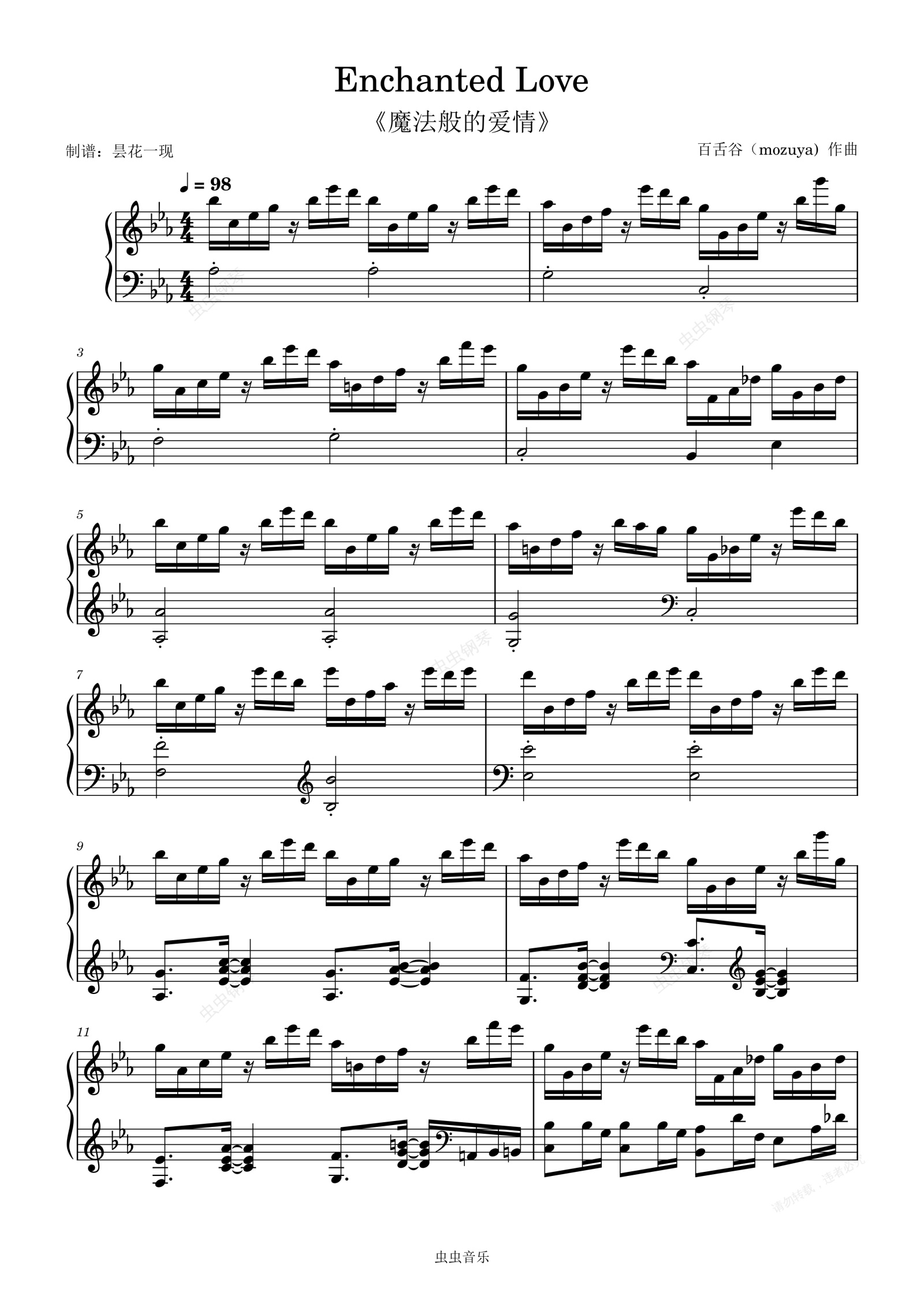 钢琴谱:Enchanted Love - 百舌谷,精心制谱,《魔法般的爱情》