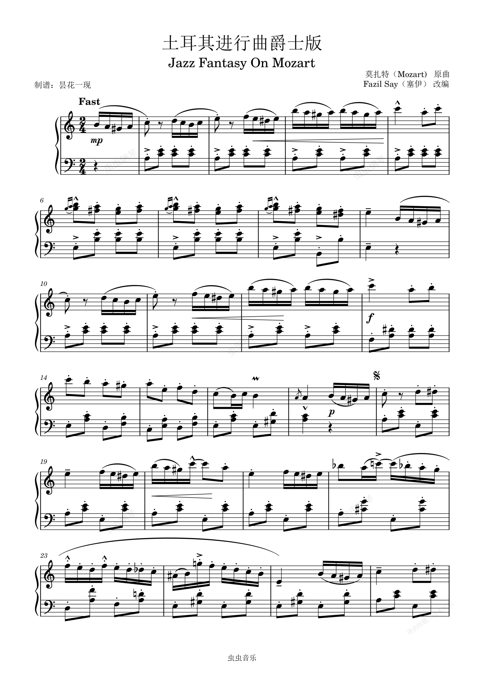 钢琴谱:土耳其进行曲爵士版 - 塞伊改编,Jazz Fantasy On Mozart