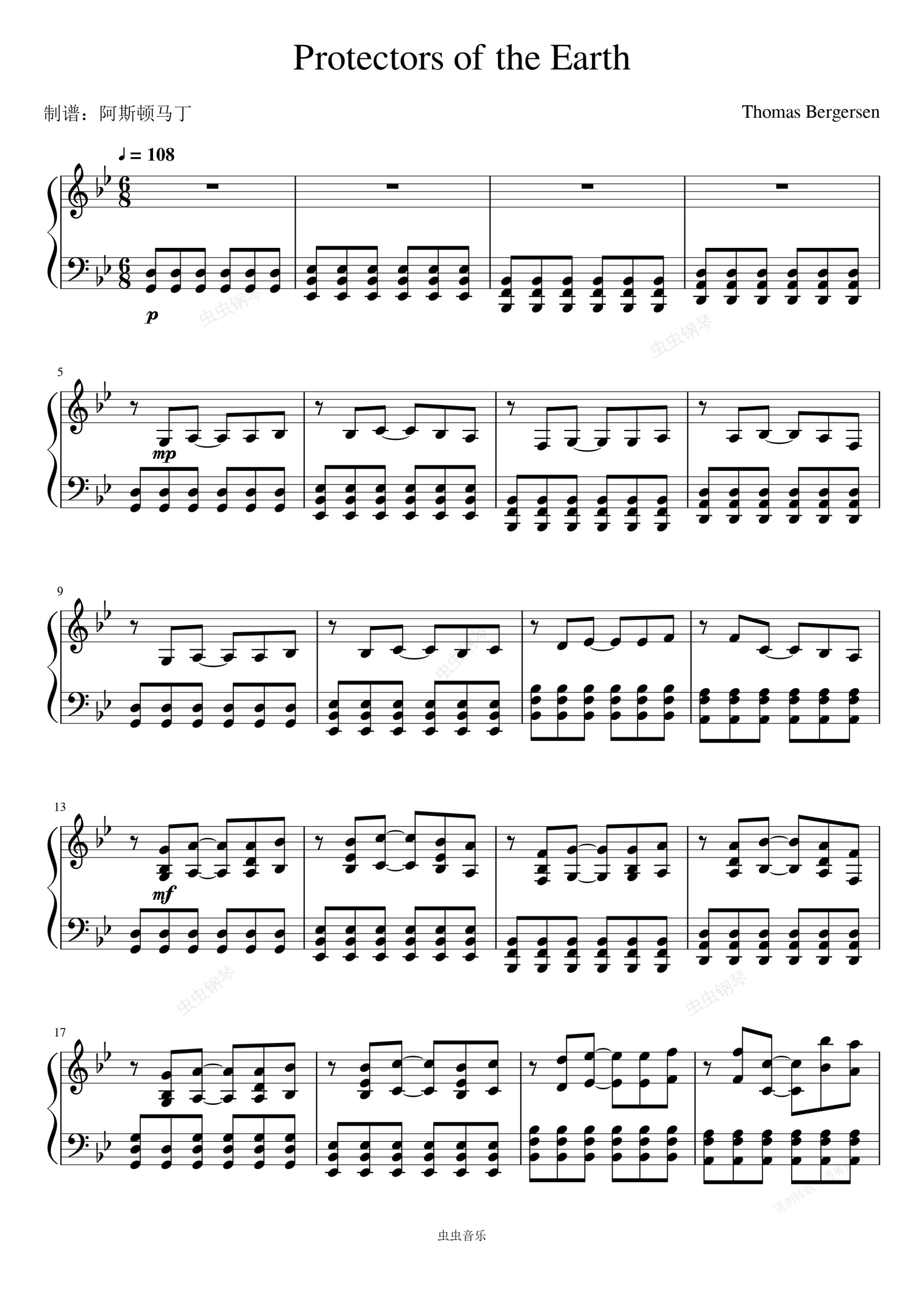 钢琴谱:Protectors of the Earth(Two step from Hell)