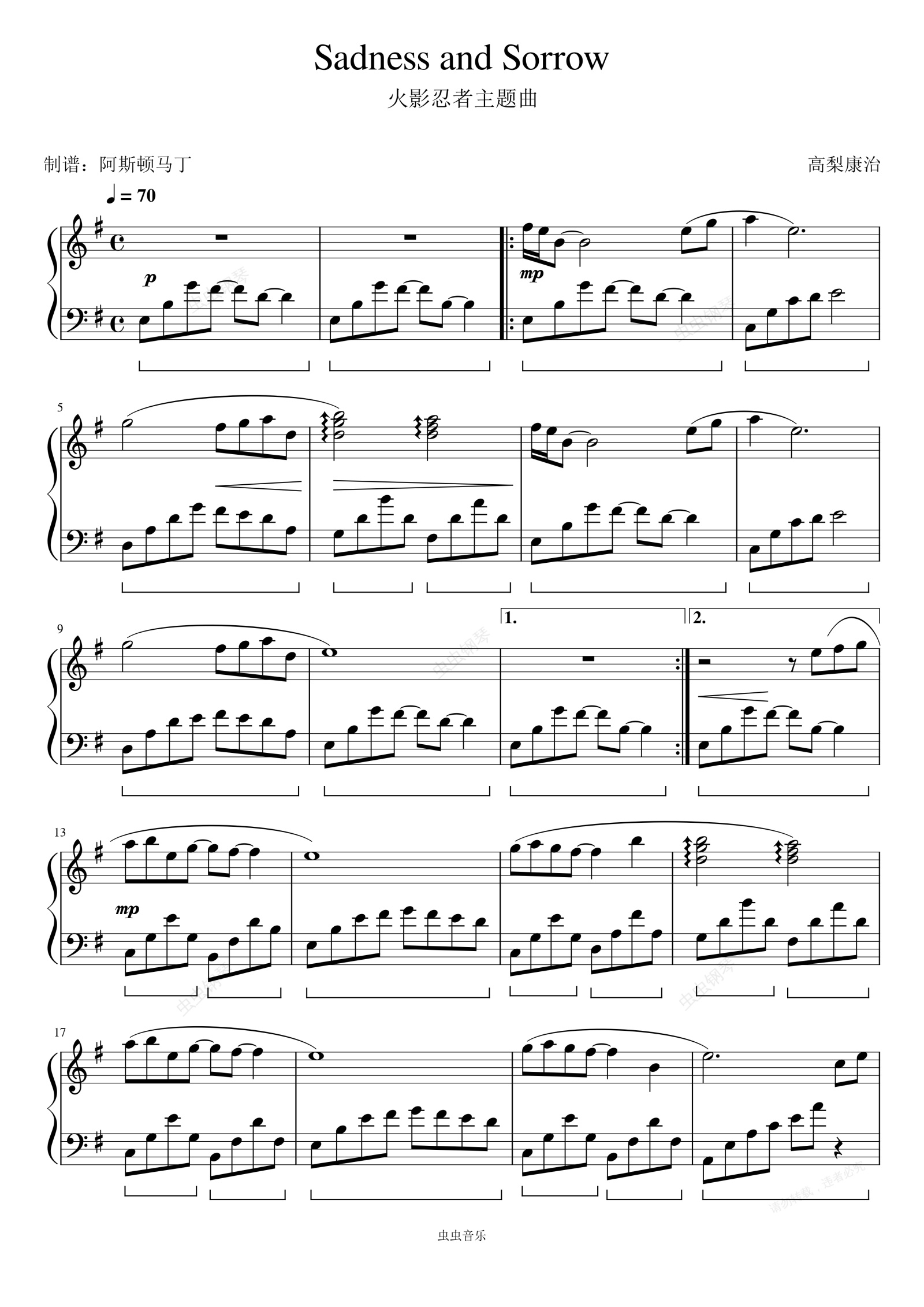 钢琴谱:Sadness and Sorrow (火影忍者)