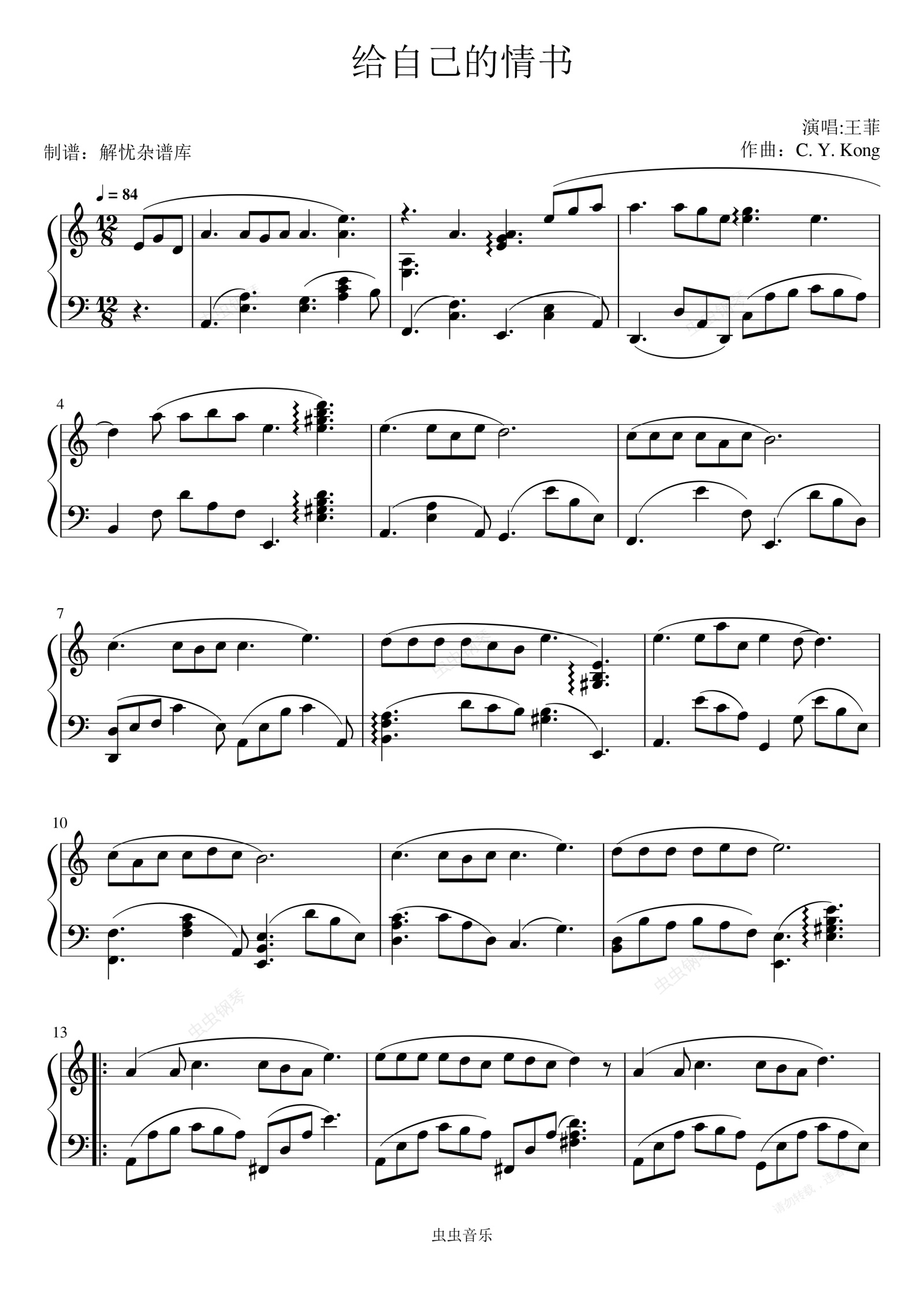 钢琴谱:给自己的情书