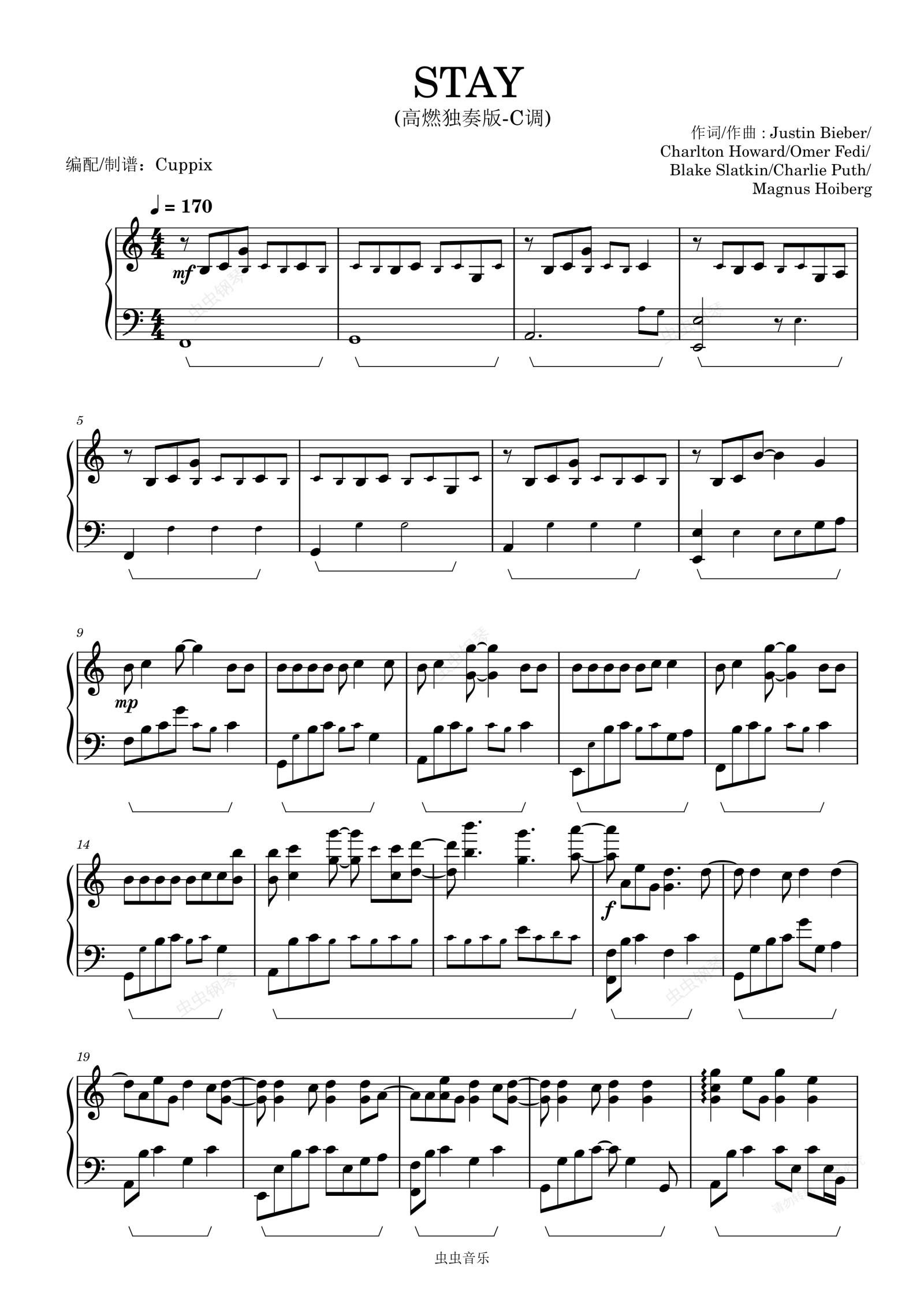 钢琴谱:《STAY》Cuppix改编-高燃独奏-C调版(The Kid LAROI,Justin Bieber)