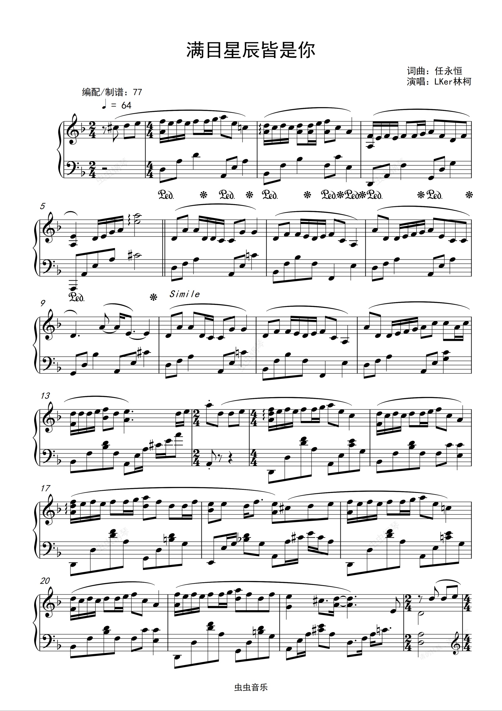 钢琴谱:LKer林柯-《满目星辰皆是你》钢琴独奏谱
