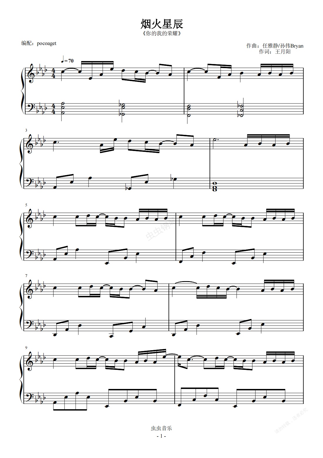 钢琴谱:烟火星辰《你是我的荣耀》(POC编配)初学者原调版