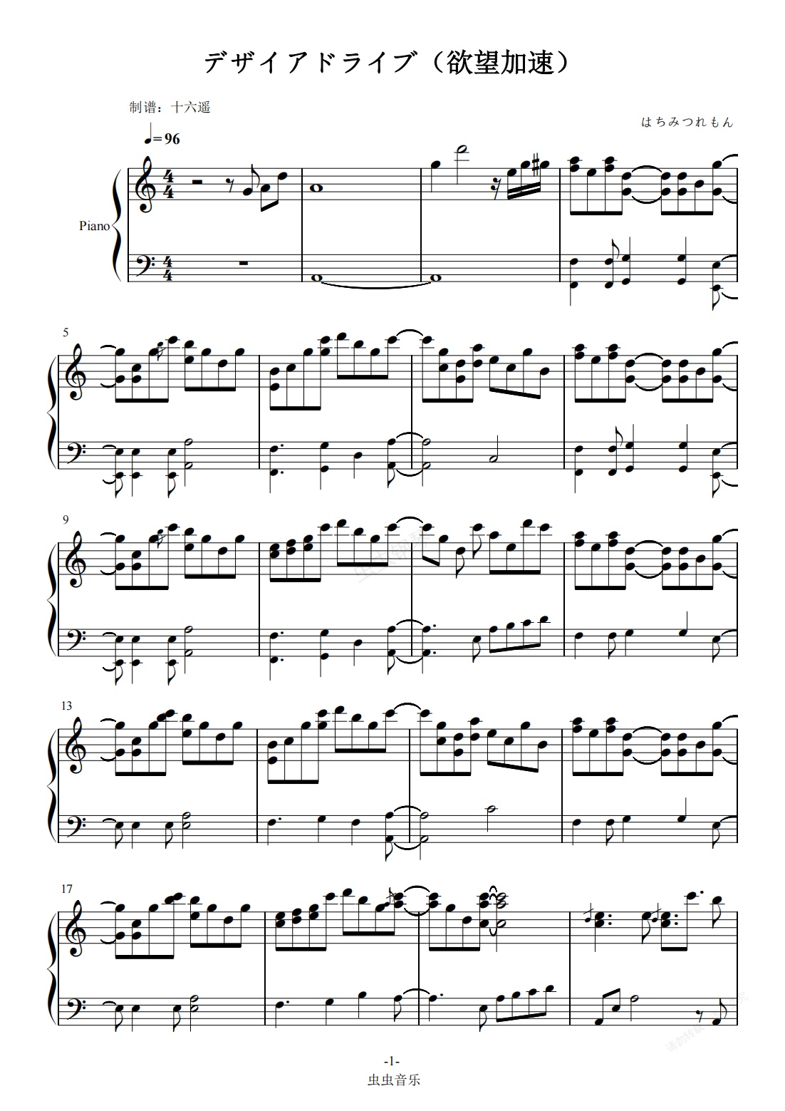 钢琴谱:デザイアドリーム(欲望加速)