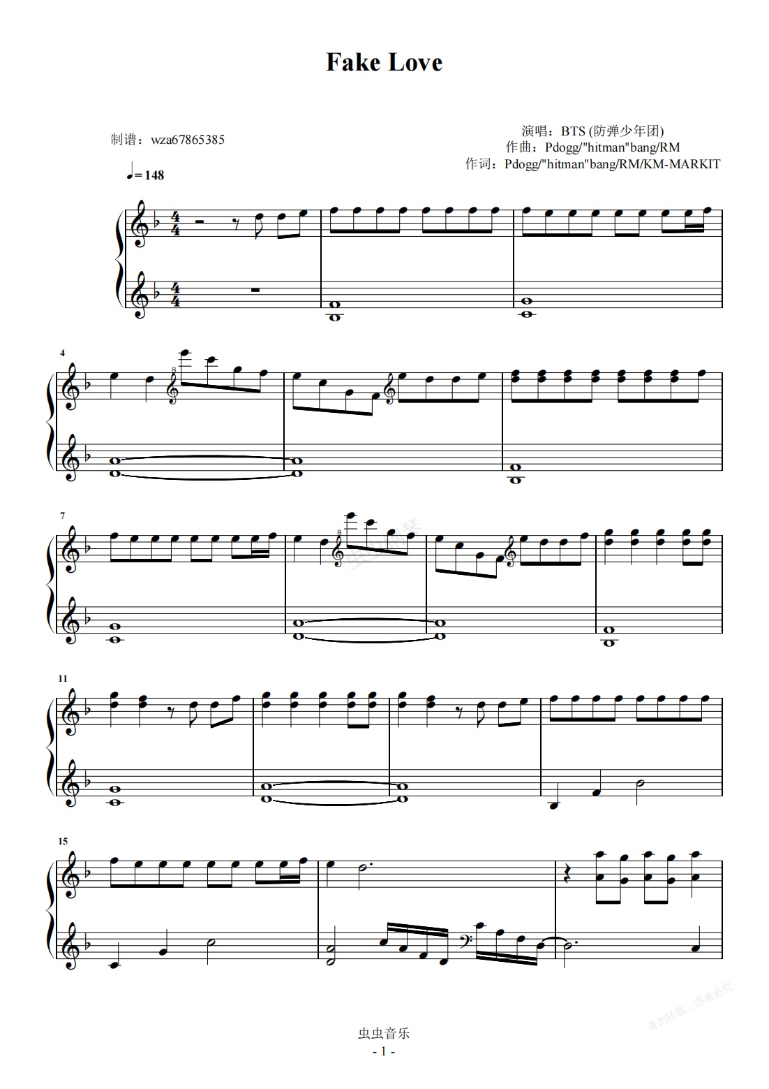 钢琴谱:Fake Love